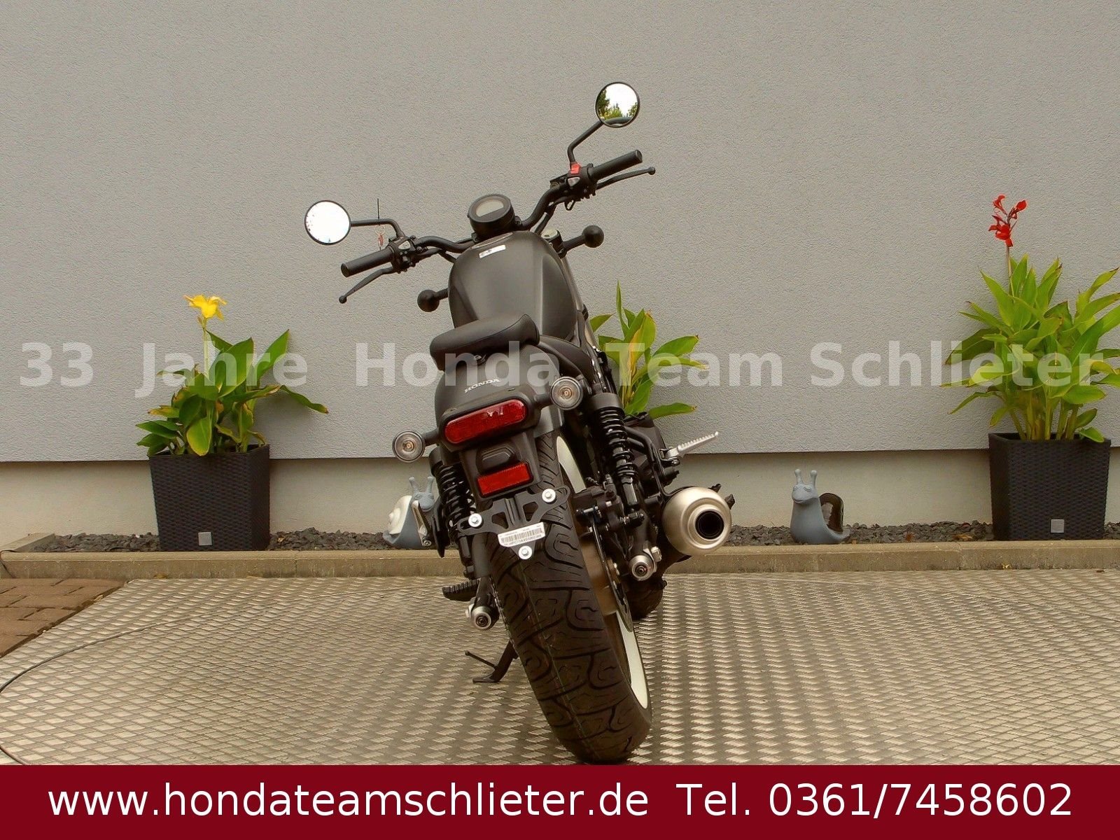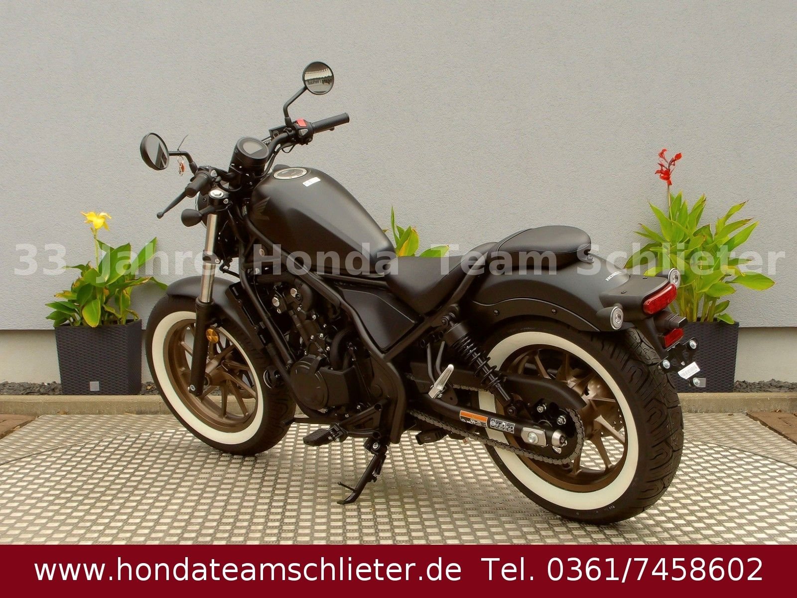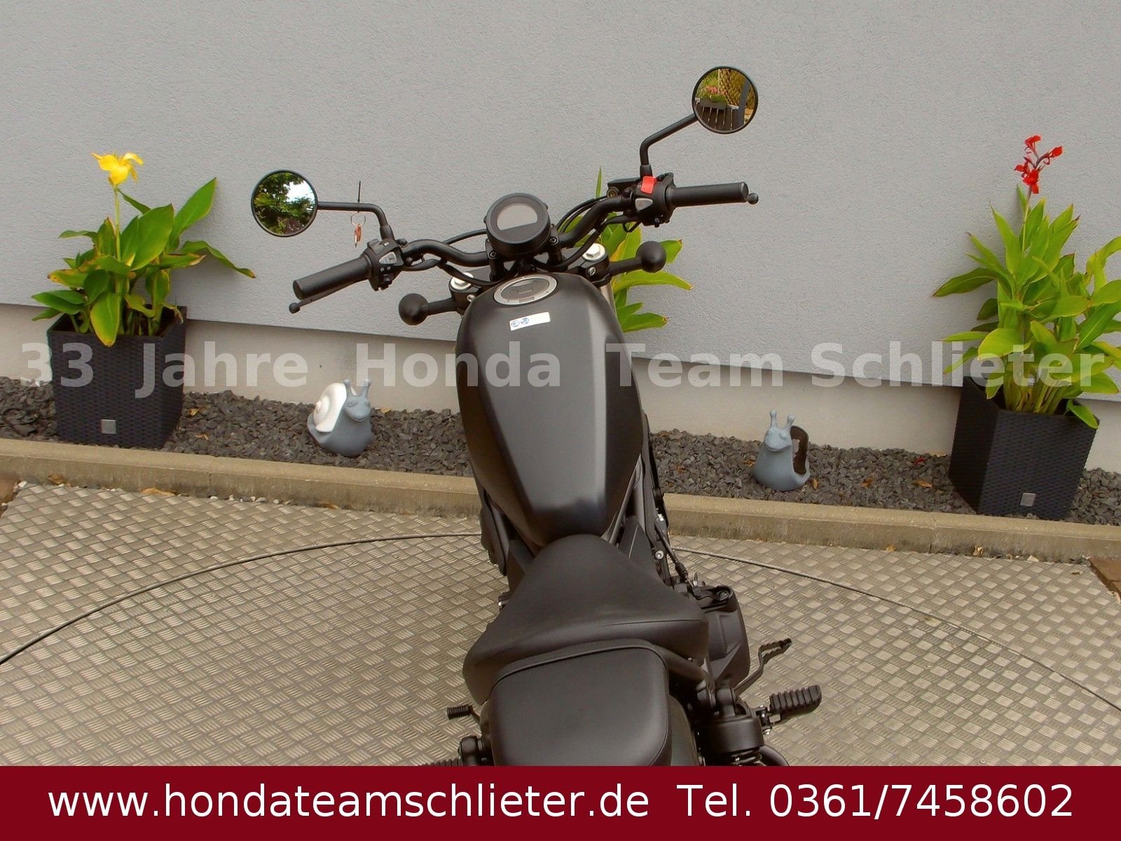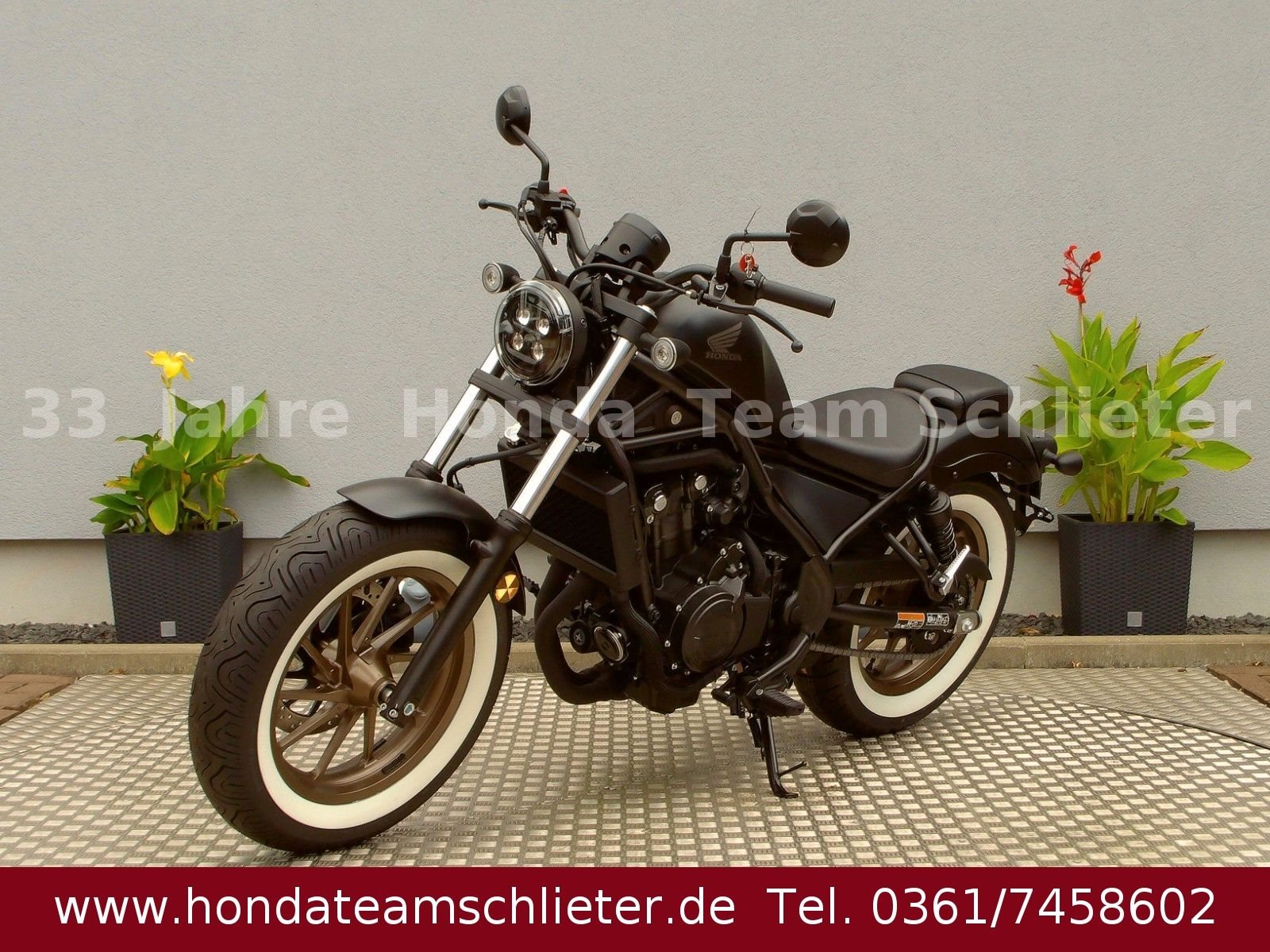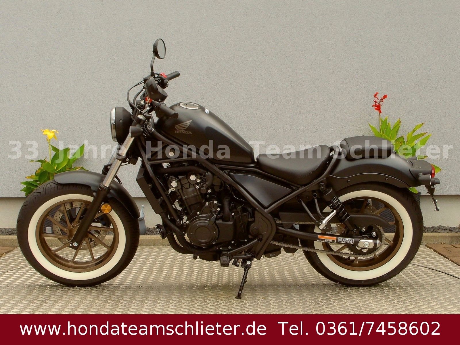 ABS Katalysator Elektrostarter Fahrzeugbeschreibung Halb bezahlt. Komplett begeistert. Die 50/50 Finanzierung. Der schnellste Weg zum Traumbike. Unsere 50/50-Finanzierung mit 0,00% Zinsen! Mit 50% Anzahlung 3495,- € starten. 24 Monate lang ohne Zinsen und Raten fahren. Danach das Bike einfach zurückgeben, den Rest 3495,- € zahlen oder anschlussfinanzieren! Weitere Infos, Beratung und Verkauf unter Tel. 0361/7458602 oder www.teamschlieter.de Wir bieten eine Anlieferung nach Absprache schnell und preiswert. Bei uns findet jeder sein Traumbike, auf ca. 500 m Ausstellungsfläche stehen zahlreiche Neumotorräder und Gebrauchtmotorräder. Es gibt ausreichend Platz für eine Besichtigung, ein Probesitzen und jeder bekommt eine faire Beratung. Ständig haben wir einen Lagerbestand von etwa 50-150 Neu- und Gebrauchtmotorrädern. Unsere Öffnungszeiten: Mo.-Fr. von 9.00-17.00 Uhr. Samstag von 9.00-12.00 Uhr. Probefahrten bitte nach Absprache! *Ein unverbindliches Finanzierungsangebot der Honda Bank GmbH, Hanauer Landstraße 222-226, 60314 Frankfurt am Main, auf Basis der unverbindlichen Preisempfehlung von Honda Deutschland. Angebote gültig für Privatkunden bis auf Widerruf, bei allen teilnehmenden Händlern. 3-Optionen-Kredit, am Ende der Laufzeit Begleichung des Restbetrages oder Finanzierung der Restsumme oder Rückgabe des Fahrzeugs (gemäß Rückkaufbedingungen). Weitere Infos, Beratung und Verkauf unter Tel. /WhatsApp 0361 7458602 oder www.teamschlieter.de Eine Finanzierung mit oder ohne Anzahlung ist möglich. Bundesweite Anlieferung auf Wunsch schnell und preiswert. Auf 500 m Ausstellungsfläche für Neumotorräder und Gebrauchtmotorräder haben Sie ausreichend Platz zur Besichtigung. Wir haben ständigen einen Lagerbestand von etwa 50-150 Motorrädern! Unsere Öffnungszeiten: Mo.-Fr. von 9.00-17.00 Uhr. Samstag von 9.00-12.00 Uhr Probefahrten bitte nach Absprache! Minimalistisches DesignJedes Detail zählt.Mit dem 471 Kubik Zweizylindermotor, der viel Drehmoment mit reichlich Durchzug verbindet und der sanften und gleichmäßigen Leistungsentfaltung ist die Rebel für die Führerscheinklasse A2 geeignet. Das Bike glänzt mit schlanken Dimensionen, niedriger Sitzhöhe und mühelosem Handling bei niedrigen Geschwindigkeiten. Mit leicht ausgestreckten Armen und neutral positionierten Fußrasten nimmt der Fahrer eine aufrechte und entspannte Fahrposition ein.Durch und durch schwarz.Der Stahlrahmen der Rebel stellt eine Neukonstruktion dar und erlaubt eine Maschine mit modern-unkonventioneller Linienführung im angedeuteten Bobber-Stil. Die Farbe Schwarz dominiert, nur wenig Teile glänzen lackiert; der Umbau vom Solo- zum Zweisitzer lässt sich mit zwei Schraubverbindungen rasch und unkompliziert bewerkstelligen. Fahrzeugdetails