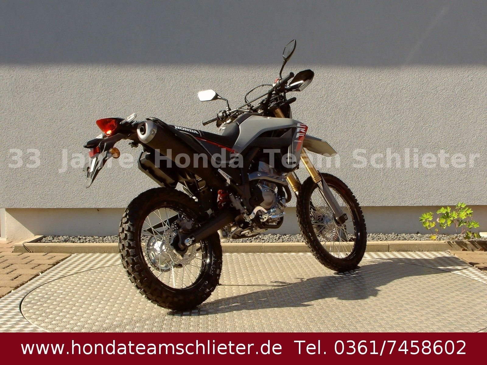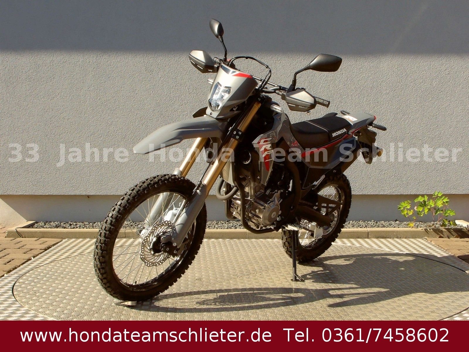 ABS Katalysator Elektrostarter Fahrzeugbeschreibung Die CRF300L ist das ultimative Leichtgewicht unter den geländegängigen Motorrädern mit Straßenzulassung. Die Merkmale, die sie so gut im Gelände machen - schlanke Proportionen, dynamische Gasannahme, agile Lenkung und das komfortable Fahrwerk - machen sie auch perfekt für die Stadt. Die überragende Allround-Performance und das agile Handling bringen Schwung in den Alltag. Die CRF300 Rally ist genau das Richtige für abenteuerlustige Fahrer, die neben Offroad-Performance auch Langstreckentauglichkeit und Komfort zu schätzen wissen.