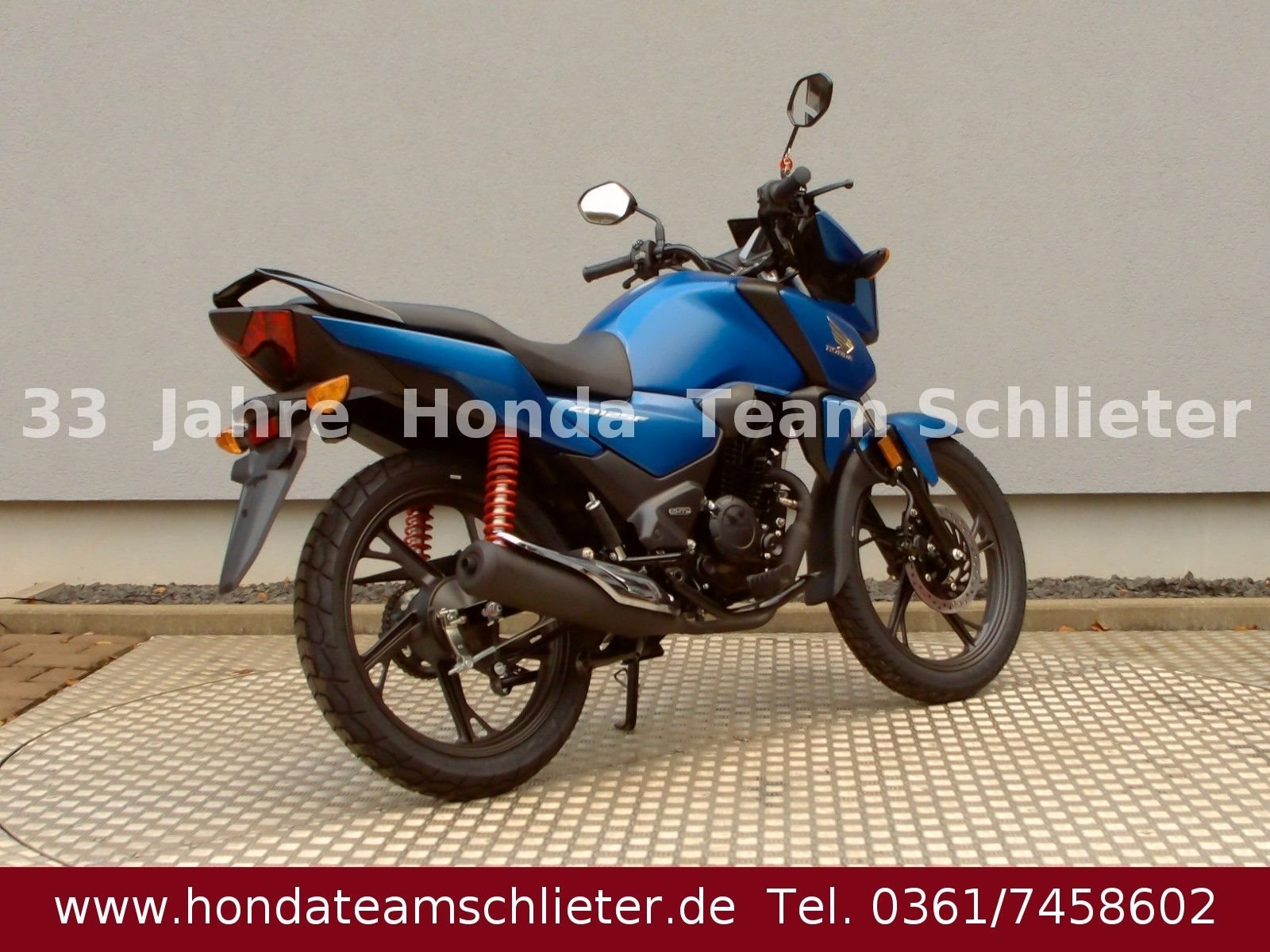 Katalysator Elektrostarter Fahrzeugbeschreibung Halb bezahlt. Komplett begeistert. Die 50/50 Finanzierung. Der schnellste Weg zum Traumbike. Mit 50% Anzahlung 1495,- € starten. 24 Monate lang ohne Raten fahren. Danach das Bike einfach zurückgeben, den Rest 1.616,68 € inkl. 3,99 % Zinsen zahlen oder anschlussfinanzieren! Die CB125F wurde von Grund auf neu gestaltet und hat dabei eine überarbeitete Front- und Heckverkleidung sowie neue LED-Scheinwerfer erhalten, die ihr ein moderneres Erscheinungsbild verleihen. Der neue 4,2-Zoll TFT-Bildschirm ist mit Bluetooth ausgestattet, sodass du Honda RoadSync nutzen kannst, um unterwegs immer auf dem Laufenden zu bleiben. Weitere Infos, Beratung und Verkauf unter Tel./Whats App 0361/7458602 oder www.teamschlieter.de Wir bieten Finanzierungen mit oder ohne Anzahlung an. Die Anlieferung ist nach Absprache schnell und preiswert möglich. Bei uns findet jeder sein Traumbike, auf ca. 500 m Ausstellungsfläche stehen zahlreiche Neumotorräder und Gebrauchtmotorräder bereit. Wir haben ausreichend Platz für die Besichtigung oder ein Probesitzen. Auch Probefahrten sind nach einer Terminvereinbarung möglich. Jeder bekommt eine faire Beratung und wir freuen uns auf Ihren Besuch. Unsere Öffnungszeiten: Mo. - Fr. von 9.00 - 17.00 Uhr Samstag von 9.00 - 12.00 Uhr Fahrzeugdetails