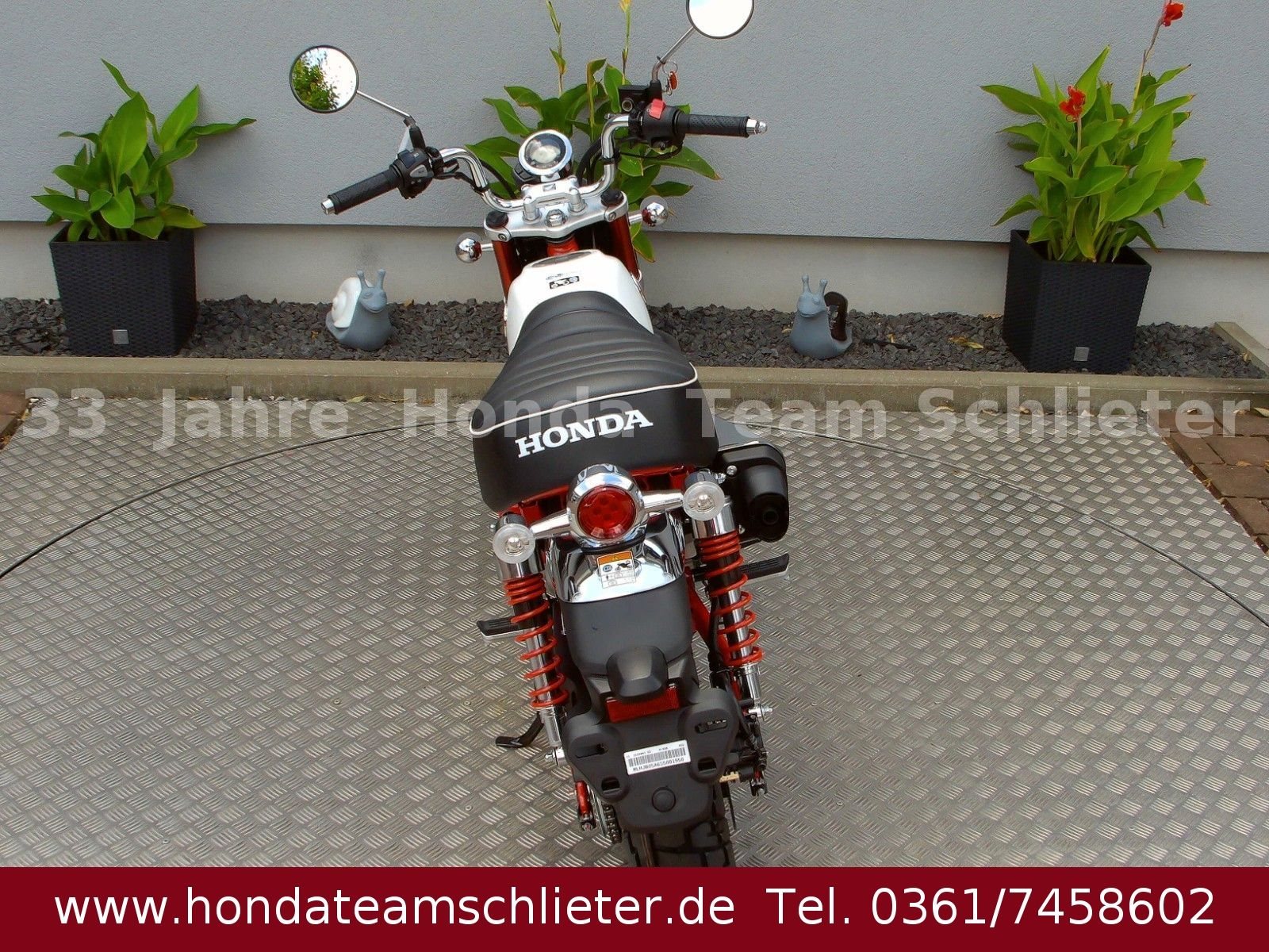 ABS Katalysator Elektrostarter Fahrzeugbeschreibung Weitere Infos, Beratung und Verkauf unter WhatsApp/Tel. 0361 7458602 oder www.teamschlieter.de Weitere Finanzierungsmöglichkeiten mit oder ohne Anzahlung möglich. Wir bieten eine Anlieferung nach Absprache schnell und preiswert. Bei uns findet jeder sein Traumbike, auf ca. 500 m Ausstellungsfläche stehen zahlreiche Neumotorräder und Gebrauchtmotorräder. Es gibt ausreichend Platz für eine Besichtigung, ein Probesitzen und jeder bekommt eine faire Beratung. Ständig haben wir einen Lagerbestand von etwa 50-120 Neu- und Gebrauchtmotorrädern. Unsere Öffnungszeiten: Mo.-Fr. von 9.00-12.00 Uhr und 13.00-17.00 Uhr Samstag von 9.00-12.00 Uhr Probefahrten bitte nach Absprache! Die Monkey ist etwas ganz Besonderes. Sie hat ihren ganz eigenen Stil. Das macht ihren einzigartigen Charakter aus. Der verchromte Hochlenker sowie die einheitliche Lackierung von Rahmen, Schwinge und Stoßdämpfern sowie der Erdnusstank und die hoch angesetzten Radabdeckungen ziehen die Blicke auf sich. Weitern unten sind die wuchtigen Stollenreifen ein wahrer Blickfang. In dem robusten Chassis mit IMU-gesteuerten ABS-Bremsen befindet sich ein brandneuer, sparsamer, luftgekühlter 125-cm-Motor mit Fünfganggetriebe. Mit nur 104 kg ist die Maschine klein und leicht. Der bequeme Sitz ist nur 775 mm vom Boden entfernt. Ein kleines Motorrad mit großem Herz, das Spaß macht und viel zu bieten hat. Das ist die Monkey. Fahrzeugdetails