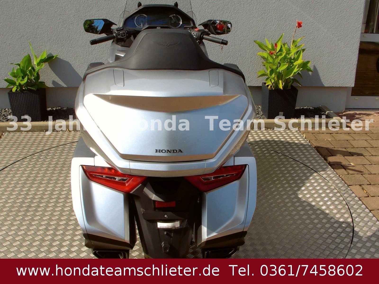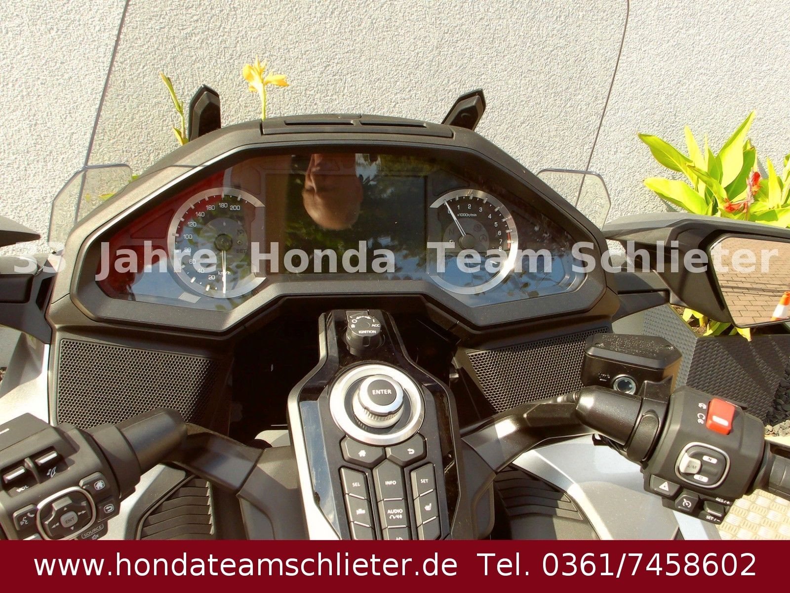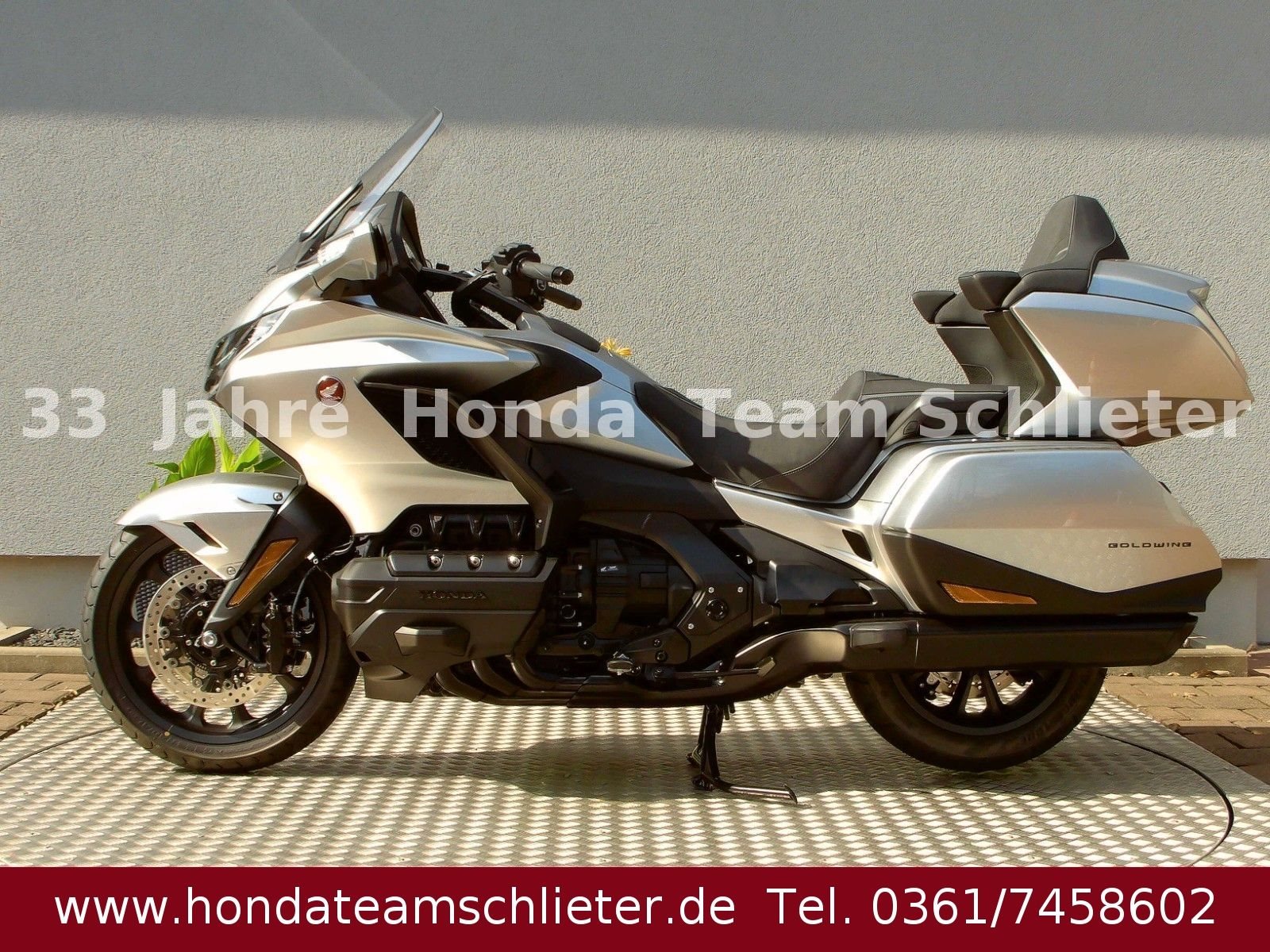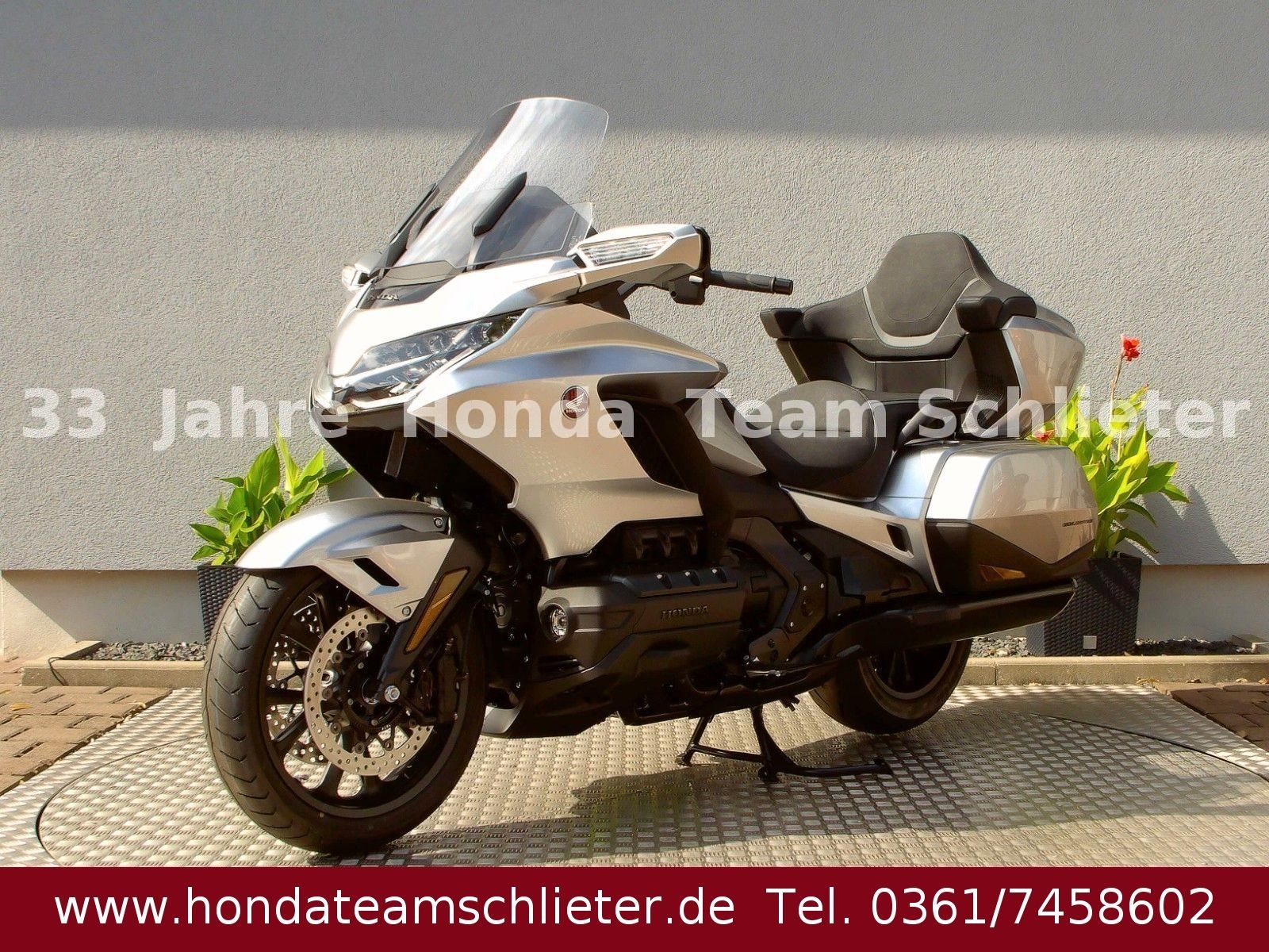 ABS Katalysator Elektrostarter Fahrzeugbeschreibung *Ihr Preisvorteil gegenüber der unverbindlichen Preisempfehlung von Honda Deutschland Die GL1800 Gold Wing Tour ist nicht umsonst ein Vorzeigemotorrad von Honda: Auf der Landstraße oder im Stadtverkehr bietet sie einzigartige Leistung und höchsten Komfort. Die Gold Wing Tour baut auf der fantastischen Gold Wing auf und bietet mit mehr Ladekapazität, mehr Komfort für den Sozius und Technologien der nächsten Generation ein noch unglaublicheres Fahrerlebnis. Hochwertige Materialen für beide Sitze garantieren höchsten Fahrkomfort. Das Audiosystem und die Lautsprecher bestechen durch eine klare Klangqualität und Doppel-LED-Nebelscheinwerfer gewährleisten gute Sicht.
