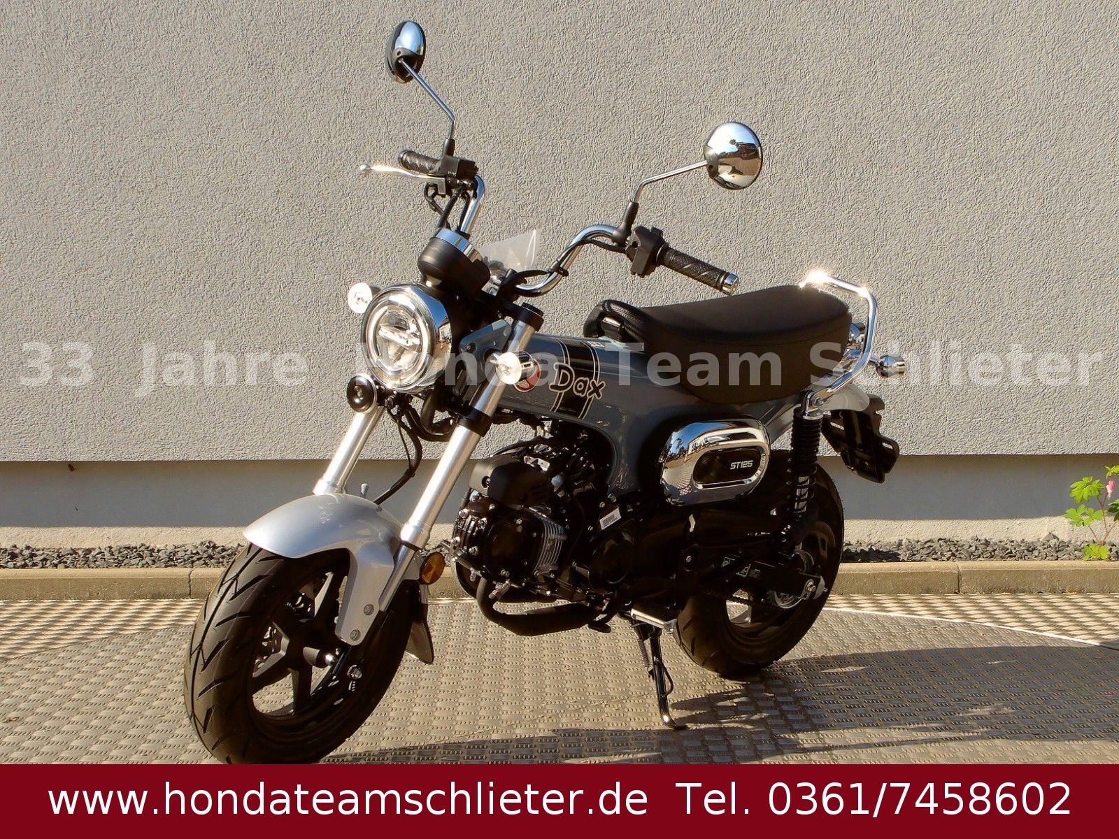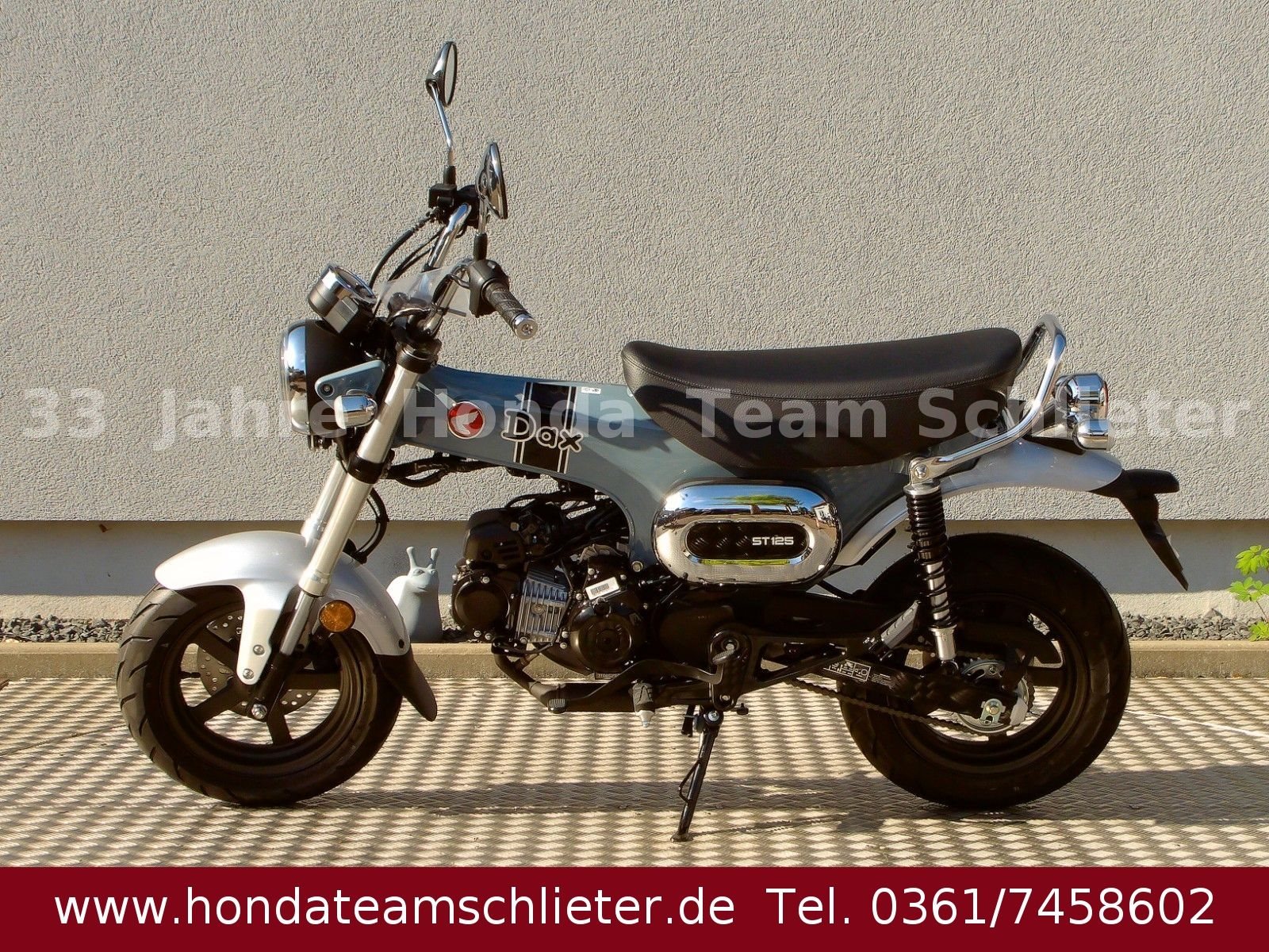 ABS Katalysator Fahrzeugbeschreibung Sie haben 800,- EUR zur unverbindlichen Preisempfehlung von Honda Deutschland gespart (UVP 5199,00EUR) Weitere Infos, Beratung und Verkauf unter: Tel./WhatsApp 0361/7458602 oder www.teamschlieter.de Weitere Finanzierungsmöglichkeiten mit oder ohne Anzahlung möglich. Wir bieten eine Anlieferung nach Absprache schnell und preiswert. Bei uns findet jeder sein Traumbike, auf ca. 500 m Ausstellungsfläche stehen zahlreiche Neumotorräder und Gebrauchtmotorräder. Es gibt ausreichend Platz für eine Besichtigung, ein Probesitzen und jeder bekommt eine faire Beratung. Ständig haben wir einen Lagerbestand von etwa 50-120 Neu- und Gebrauchtmotorrädern. Unsere Öffnungszeiten: Mo.-Fr. von 9.00-17.00 Uhr. Samstag von 9.00-12.00 Uhr. Probefahrten bitte nach Absprache! Echter Retro-CharmeWie die Dax zu ihrem Namen kam? Den verdankt sie dem T-förmigen Rahmen aus gewalztem Stahl, der an die Silhouette eines Dachshunds (Dackels) erinnert. Er wurde mit dem technischen Know-how des 21. Jahrhunderts konstruiert, hält eine Menge aus und sieht toll aus. Das unverwechselbare, charmante Design bleibt jedoch bis ins kleinste Detail erhalten, vom hohen Mini-Ape-Lenker und dem nach oben weisenden Offroad-inspirierten Auspuff bis hin zur Doppelsitzbank. Fahrzeugdetails