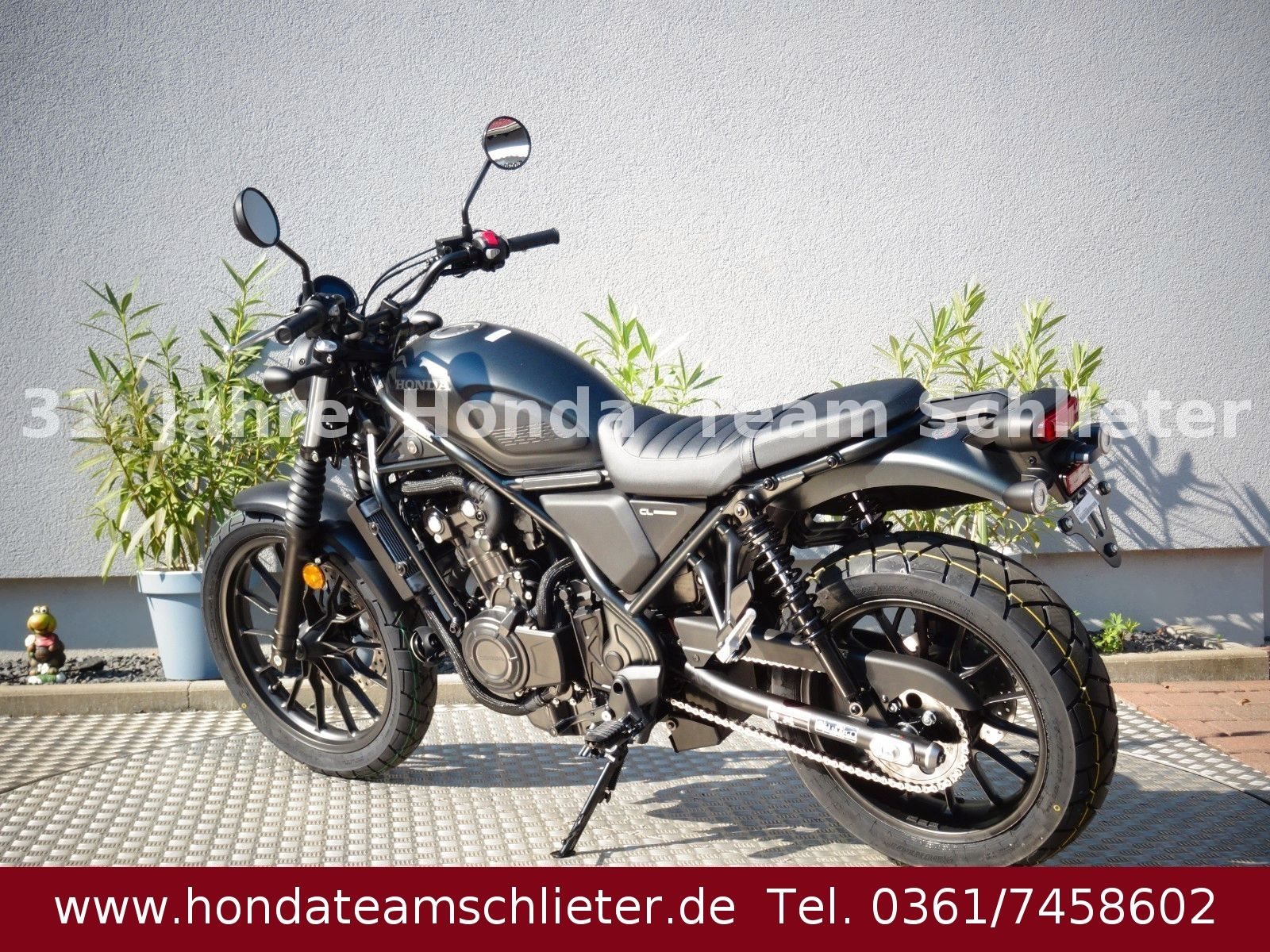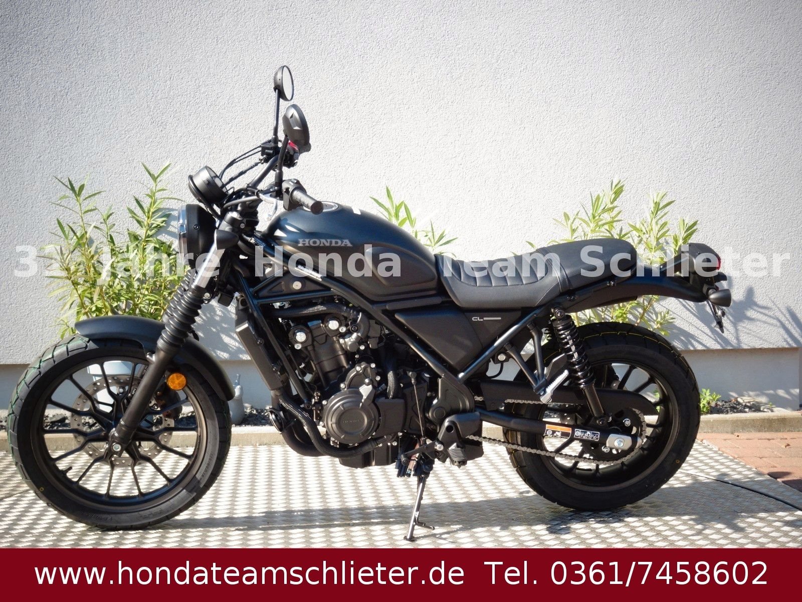 ABS Katalysator Elektrostarter Fahrzeugbeschreibung ? Sie haben 2000,- EUR zur unverbindlichen Preisempfehlung von Honda Deutschland gespart! Weitere Infos, Beratung und Verkauf unter: Tel./WhatsApp 0361/7458602 oder www.teamschlieter.de Finanzierungsmöglichkeiten mit oder ohne Anzahlung möglich. Wir bieten eine Anlieferung nach Absprache schnell und preiswert. Bei uns findet jeder sein Traumbike, auf ca. 500 m Ausstellungsfläche stehen zahlreiche Neumotorräder und Gebrauchtmotorräder. Es gibt ausreichend Platz für eine Besichtigung, ein Probesitzen und jeder bekommt eine faire Beratung.Ständig haben wir einen Lagerbestand von etwa 50-120 Neu- und Gebrauchtmotorrädern. Unsere Öffnungszeiten: Mo.-Fr. von 9.00-17.00 Uhr. Samstag von 9.00-12.00 Uhr. Probefahrten bitte nach Absprache! FS A2 tauglich! Dein Spiegelbild,mit der CL72 kam 1962 unser erster Straßen-Scrambler auf den Markt. Wir dachten uns, es sei an der Zeit, eine neue Generation auf den Markt zu bringen, die für die Straßen von heute gemacht ist. Die neue CL500 kommt so derb daher, wie es ihre lange Ahnenreihe erwarten lässt. Der kräftige, A2-konforme Zweizylindermotor verrichtet seinen Dienst in einem robusten und kompakten Chassis. Die Maschine lädt förmlich dazu ein, gefahren und nach eigenen Vorlieben gestaltet zu werden. Genau wie das Original. Fahrzeugdetails