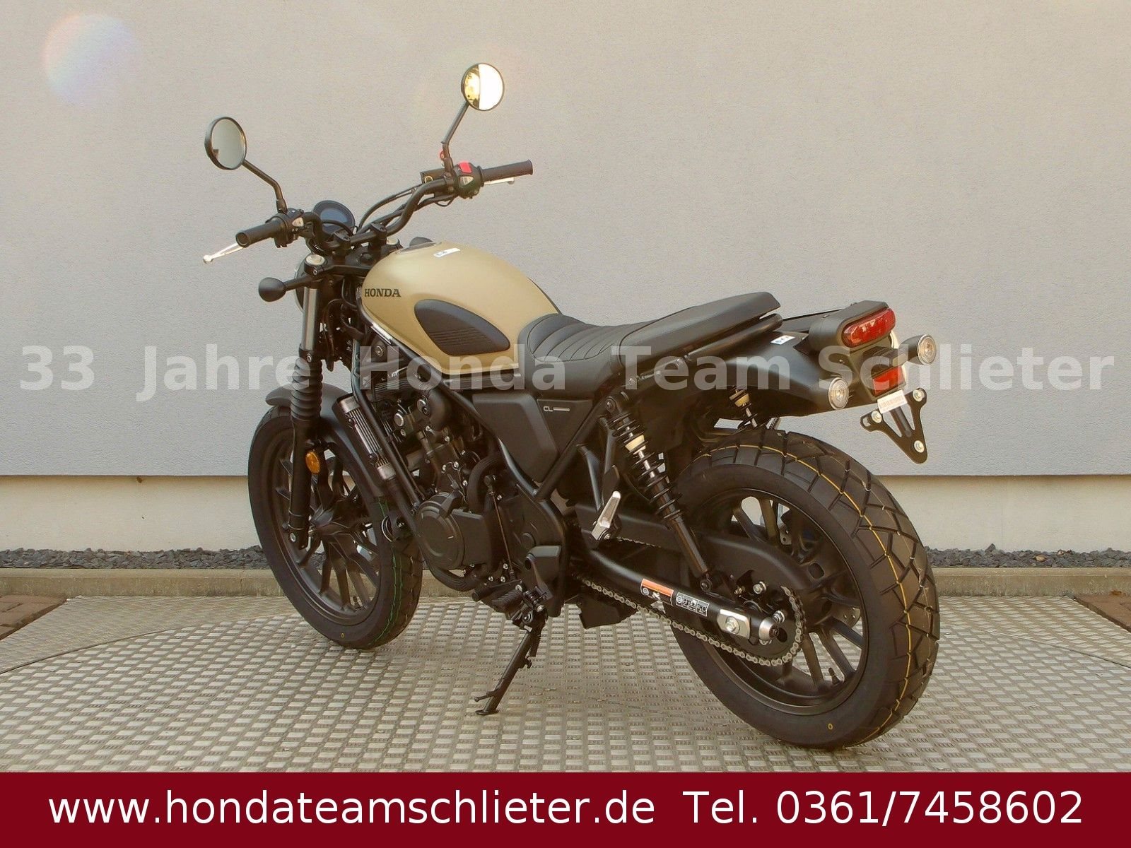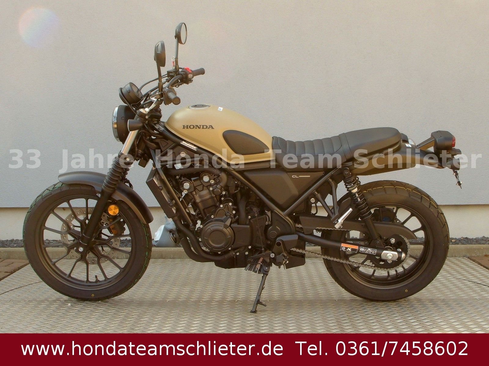 ABS Katalysator Elektrostarter Fahrzeugbeschreibung Halb bezahlt. Komplett begeistert. Die 50/50 Finanzierung mit 0% Zinsen. Der schnellste Weg zum Traumbike. Mit 50% Anzahlung 2995,- € starten. 24 Monate lang ohne Zinsen und Raten fahren. Danach das Bike einfach zurückgeben, den Rest 2995,- € zahlen oder anschlussfinanzieren! Weitere Infos, Beratung und Verkauf unter Tel. 0361/7458602 oder **www.teamschlieter.de Wir bieten eine Anlieferung nach Absprache schnell und preiswert. Bei uns findet jeder sein Traumbike, auf ca. 500 m Ausstellungsfläche stehen zahlreiche Neumotorräder und Gebrauchtmotorräder. Es gibt ausreichend Platz für eine Besichtigung, ein Probesitzen und jeder bekommt eine faire Beratung. Ständig haben wir einen Lagerbestand von etwa 50-150 Neu- und Gebrauchtmotorrädern. Unsere Öffnungszeiten: Mo.-Fr. von 9.00-17.00 Uhr. Samstag von 9.00-12.00 Uhr. Probefahrten bitte nach Absprache! ?? Ein unverbindliches Finanzierungsangebot der Honda Bank GmbH, Hanauer Landstraße 222-226, 60314 Frankfurt am Main, auf Basis der unverbindlichen Preisempfehlung von Honda Deutschland. Angebote gültig für Privatkunden bis auf Widerruf, bei allen teilnehmenden Händlern. 3-Optionen-Kredit, am Ende der Laufzeit Begleichung des Restbetrages oder Finanzierung der Restsumme oder Rückgabe des Fahrzeugs (gemäß Rückkaufbedingungen). Dein Spiegelbild,mit der CL72 kam 1962 unser erster Straßen-Scrambler auf den Markt. Wir dachten uns, es sei an der Zeit, eine neue Generation auf den Markt zu bringen, die für die Straßen von heute gemacht ist. Die neue CL500 kommt so derb daher, wie es ihre lange Ahnenreihe erwarten lässt. Der kräftige, A2-konforme Zweizylindermotor verrichtet seinen Dienst in einem robusten und kompakten Chassis. Die Maschine lädt förmlich dazu ein, gefahren und nach eigenen Vorlieben gestaltet zu werden. Genau wie das Original. Fahrzeugdetails