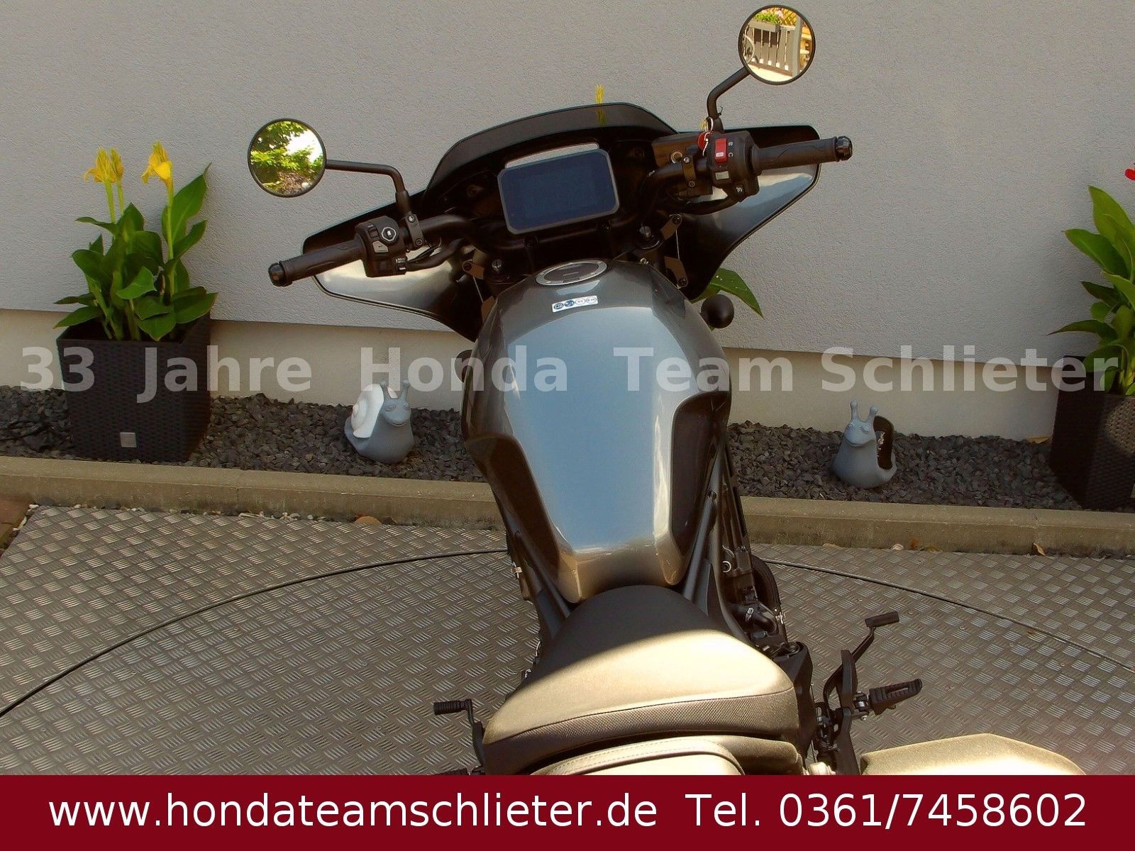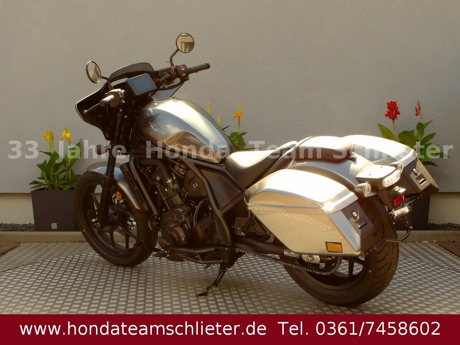 ABS Katalysator Elektrostarter Fahrzeugbeschreibung Halb bezahlt. Komplett begeistert. Die 50/50 Finanzierung. Der schnellste Weg zum Traumbike. Unsere 50/50-Finanzierung mit 0,00% Zinsen! Mit 50% Anzahlung 5995,- € starten. 24 Monate lang ohne Zinsen und Raten fahren. Danach das Bike einfach zurückgeben, den Rest 5995,- € zahlen oder anschlussfinanzieren! Weitere Infos, Beratung und Verkauf unter Tel. 0361/7458602 oder www.teamschlieter.de Wir bieten eine Anlieferung nach Absprache schnell und preiswert. Bei uns findet jeder sein Traumbike, auf ca. 500 m Ausstellungsfläche stehen zahlreiche Neumotorräder und Gebrauchtmotorräder. Es gibt ausreichend Platz für eine Besichtigung, ein Probesitzen und jeder bekommt eine faire Beratung. Ständig haben wir einen Lagerbestand von etwa 50-150 Neu- und Gebrauchtmotorrädern. Unsere Öffnungszeiten: Mo.-Fr. von 9.00-17.00 Uhr. Samstag von 9.00-12.00 Uhr. Probefahrten bitte nach Absprache! *Ein unverbindliches Finanzierungsangebot der Honda Bank GmbH, Hanauer Landstraße 222-226, 60314 Frankfurt am Main, auf Basis der unverbindlichen Preisempfehlung von Honda Deutschland. Angebote gültig für Privatkunden bis auf Widerruf, bei allen teilnehmenden Händlern. 3-Optionen-Kredit, am Ende der Laufzeit Begleichung des Restbetrages oder Finanzierung der Restsumme oder Rückgabe des Fahrzeugs (gemäß Rückkaufbedingungen). Sie haben 900,- € zur unverbindlichen Preisempfehlung von Honda Deutschland gespart! (UVP 12890,- EUR) Es geht nicht nur darum, wo du gewesen bist. Es geht darum, wohin du gehst. Mit der neuen CMX1100 Rebel bist du auf der Straße unterwegs wie nie zuvor. Der charakterstarke Zweizylindermotor bringt mehr Leistung im niedrigen bis mittleren Drehzahlbereich mit. Die entspanntere Sitzposition mit erhöhtem und in Richtung des Fahrers nach hinten versetztem Lenker, nach vorn versetzten Fußrasten und 10 mm höherem Sitz bietet mehr Komfort und Sicherheit. Hinzu kommt das neue 5-Zoll-TFT-Display mit Smartphone-Konnektivität per Honda RoadSync, mit dem du unterwegs auf dem Laufenden bleibst. Wir bieten eine Anlieferung nach Absprache schnell und preiswert. Bei uns findet jeder sein Traumbike, auf ca. 500 m Ausstellungsfläche stehen zahlreiche Neumotorräder und Gebrauchtmotorräder. Es gibt ausreichend Platz für eine Besichtigung, ein Probesitzen und jeder bekommt eine faire Beratung. Ständig haben wir einen Lagerbestand von etwa 50-150 Neu- und Gebrauchtmotorrädern. Unsere Öffnungszeiten: Mo.-Fr. von 9.00-17.00 Uhr Samstag von 9.00-12.00 Uhr Probefahrten bitte nach Absprache! Fahrzeugdetails