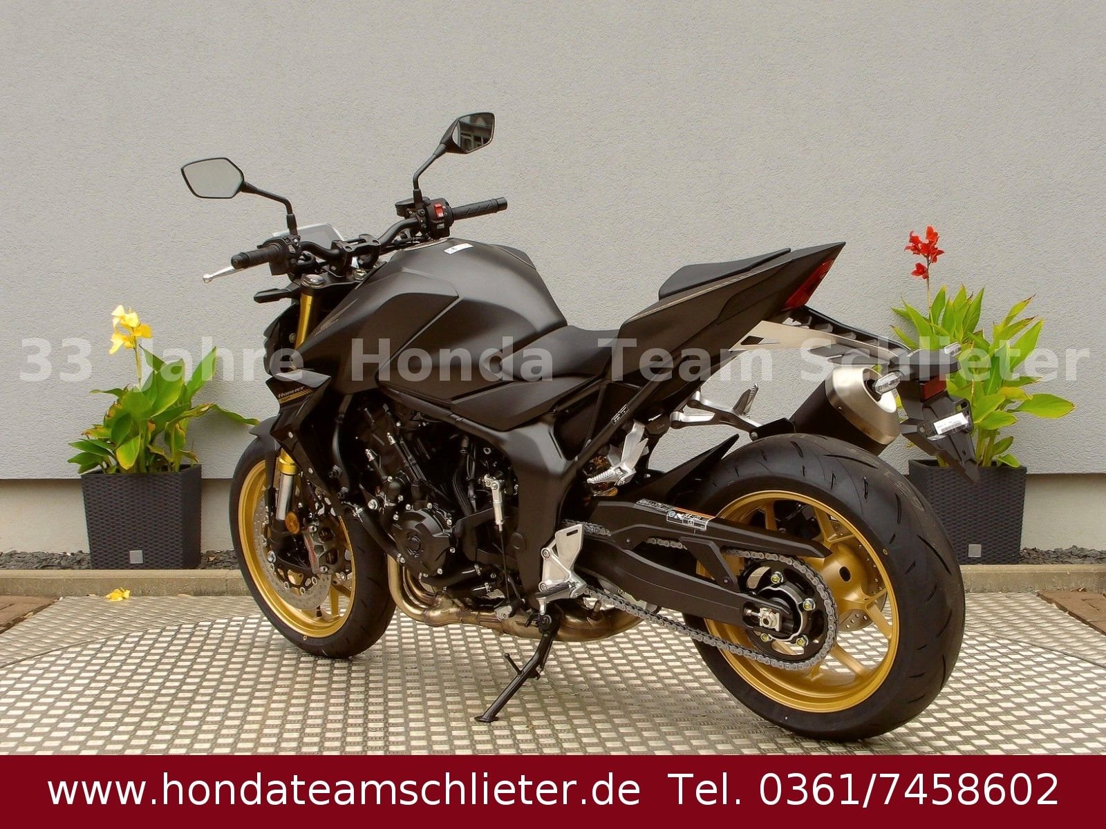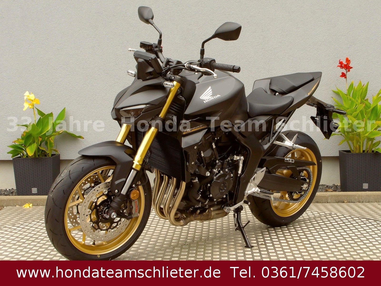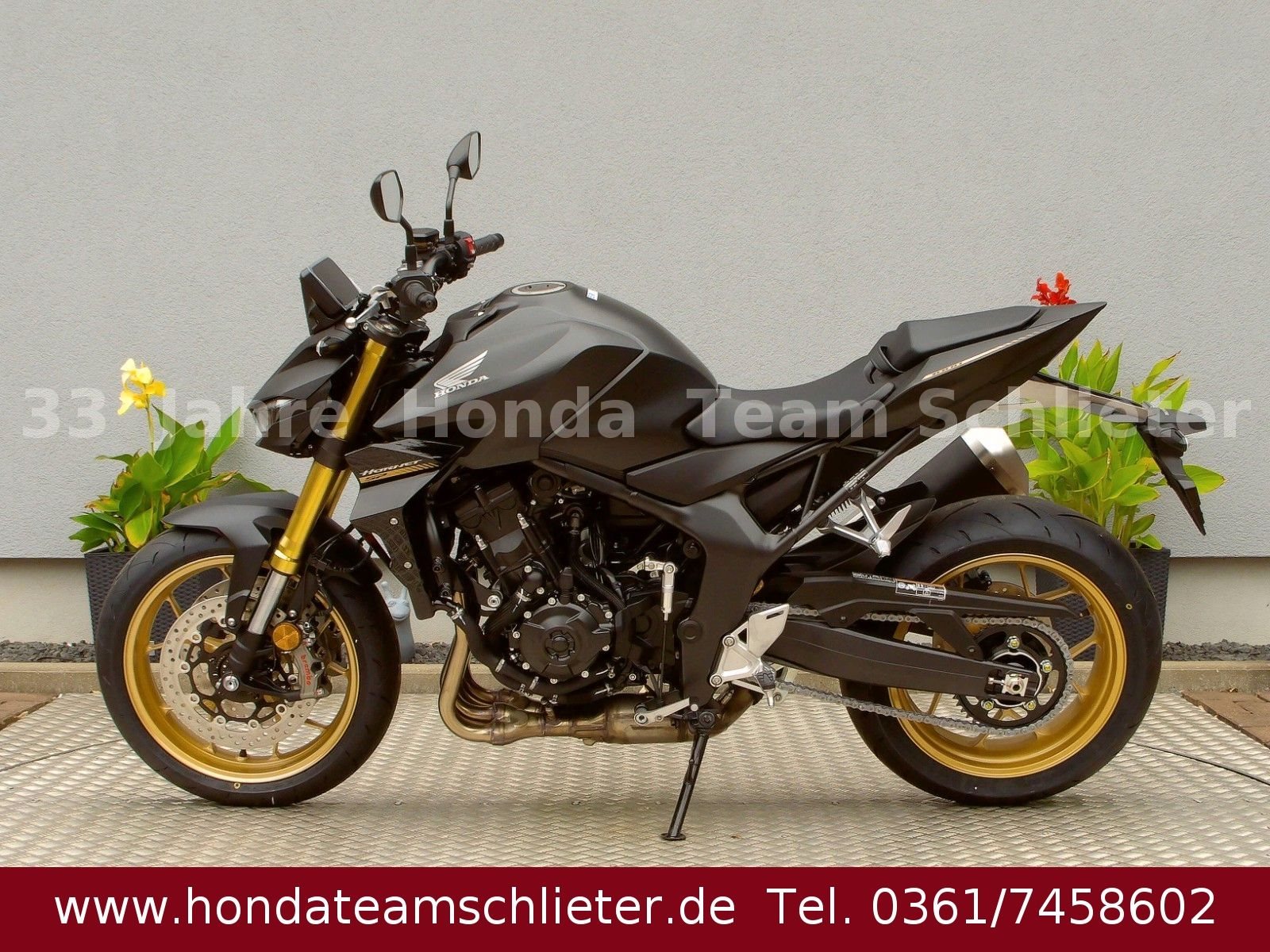 ABS Katalysator Elektrostarter Fahrzeugbeschreibung Halb bezahlt. Komplett begeistert. Die 50/50 Finanzierung. Der schnellste Weg zum Traumbike. Unsere 50/50-Finanzierung mit 0,00% Zinsen! Mit 50% Anzahlung 5495,- € starten. 24 Monate lang ohne Zinsen und Raten fahren. Danach das Bike einfach zurückgeben, den Rest 5495,-,- € zahlen oder anschlussfinanzieren! Weitere Infos, Beratung und Verkauf unter Tel. 0361/7458602 oder www.teamschlieter.de Wir bieten eine Anlieferung nach Absprache schnell und preiswert. *Ein unverbindliches Finanzierungsangebot der Honda Bank GmbH, Hanauer Landstraße 222-226, 60314 Frankfurt am Main, auf Basis der unverbindlichen Preisempfehlung von Honda Deutschland. Angebote gültig für Privatkunden bis auf Widerruf, bei allen teilnehmenden Händlern. 3-Optionen-Kredit, am Ende der Laufzeit Begleichung des Restbetrages oder Finanzierung der Restsumme oder Rückgabe des Fahrzeugs (gemäß Rückkaufbedingungen). Die Hornet-Familie ist jetzt vollständig und unser Topmodell sticht heraus. Die neue CB1000 Hornet mit ihrem Vierzylindermotor ist ein erstklassiges Naked Bike, das den Asphalt zum Glühen bringt. Throttle By Wire sorgt für präzise Kontrolle. Die unverfälschte, aggressive Streetfighter-Attitüde wird durch einen markanten LED-Doppelscheinwerfer unterstrichen. Das 5-Zoll TFT-Farbdisplay und die Honda RoadSync-Konnektivität sorgen für die nötigen Informationen. Kann es losgehen? Weitere Infos, Beratung und Verkauf unter Tel./Whats App 0361/7458602 oder www.teamschlieter.de Auch bieten wir eine Finanzierung mit oder auch ohne Anzahlung an. Die Anlieferung ist nach Absprache schnell und preiswert möglich. Bei uns findet jeder sein Traumbike, auf ca. 500 m Ausstellungsfläche stehen zahlreiche Neumotorräder und Gebrauchtmotorräder bereit. Wir haben ausreichend Platz für die Besichtigung oder ein Probesitzen. Auch Probefahrten sind nach einer Terminvereinbarung möglich. Jeder bekommt eine faire Beratung und wir freuen uns auf Ihren Besuch. Unsere Öffnungszeiten: Mo. - Fr. von 9.00 - 17.00 Uhr Samstag von 9.00 - 12.00 Uhr Sowie nach Absprach! Fahrzeugdetails