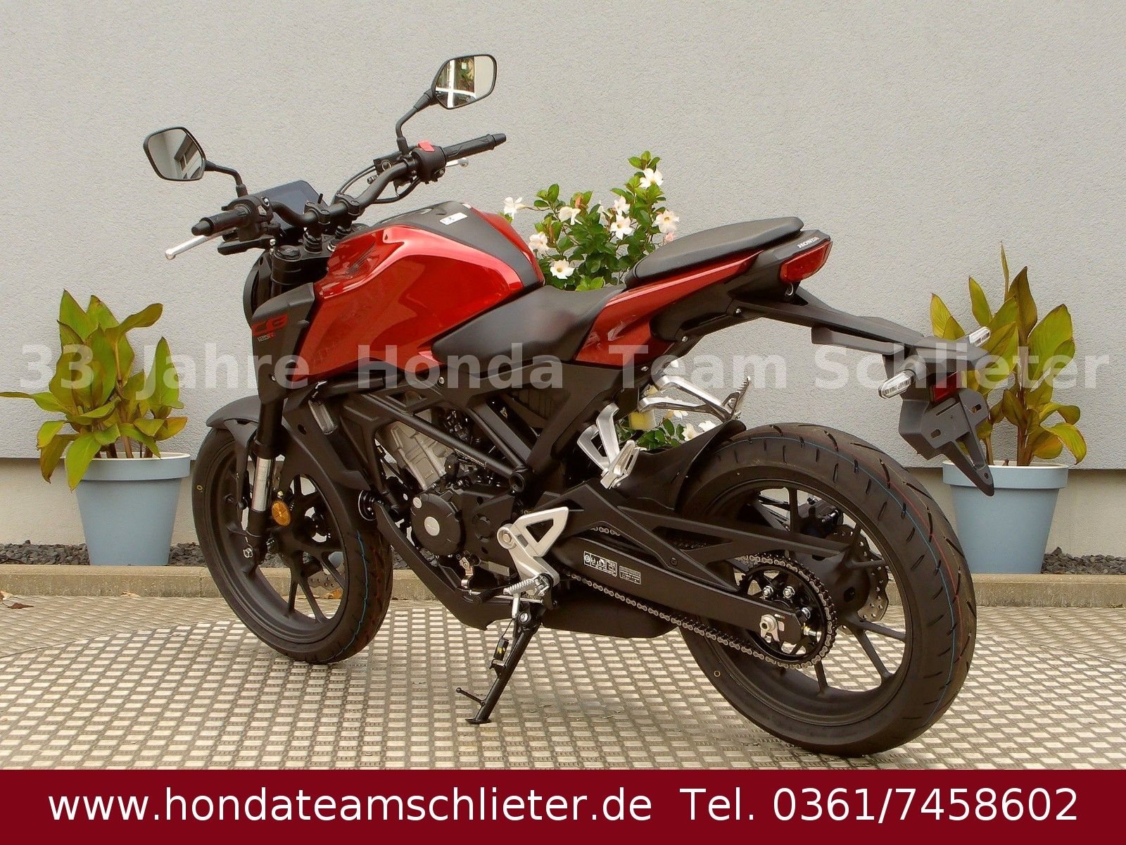 ABS Katalysator Fahrzeugbeschreibung ?Sie haben 519,- € zur unverbindlichen Preisempfehlung von Honda Deutschland gespart! Die CB125R sieht nicht nur gut aus, sondern fährt dank ihrer geballten Leistung auch so gut. Das schlanke und minimalistische Design sorgt für einen unverwechselbaren Look, der das Bike von der Masse abhebt. Die einfache Handhabung und die ausgefeilte Technik sorgen für eine präzise Steuerung, die perfekt für neue A1- oder B196-Führerscheininhaber ist. Weitere Infos, Beratung und Verkauf unter Tel./ Whats App 0361/7458602 oder www.teamschlieter.de Wir bieten eine Anlieferung nach Absprache schnell und preiswert. Bei uns findet jeder sein Traumbike, auf ca. 500 m Ausstellungsfläche stehen zahlreiche Neumotorräder und Gebrauchtmotorräder. Wir bieten ausreichend Platz für eine Besichtigung und Probesitzen und jeder bekommt eine faire Beratung. Ständig haben wir einen Lagerbestand von etwa 50-120 Neu.- und Gebrauchtmotorrädern. Unsere Öffnungszeiten: Mo.-Fr. von 9.00-17.00 Uhr Samstag von 9.00-12.00 Uhr Probefahrten bitte nach Absprache! Fahrzeugdetails