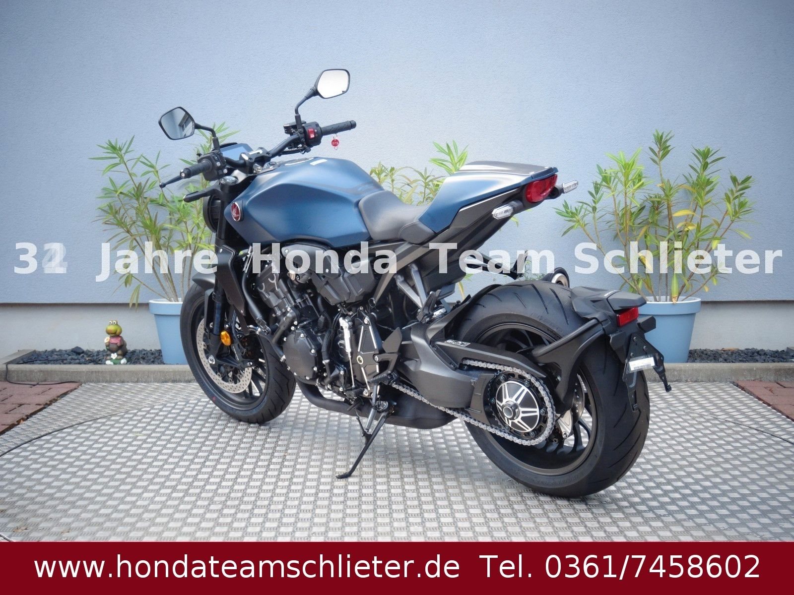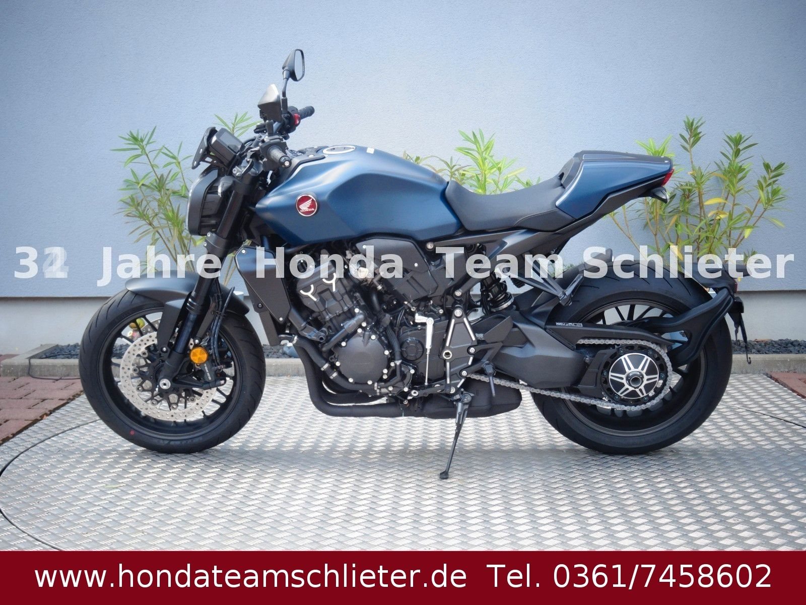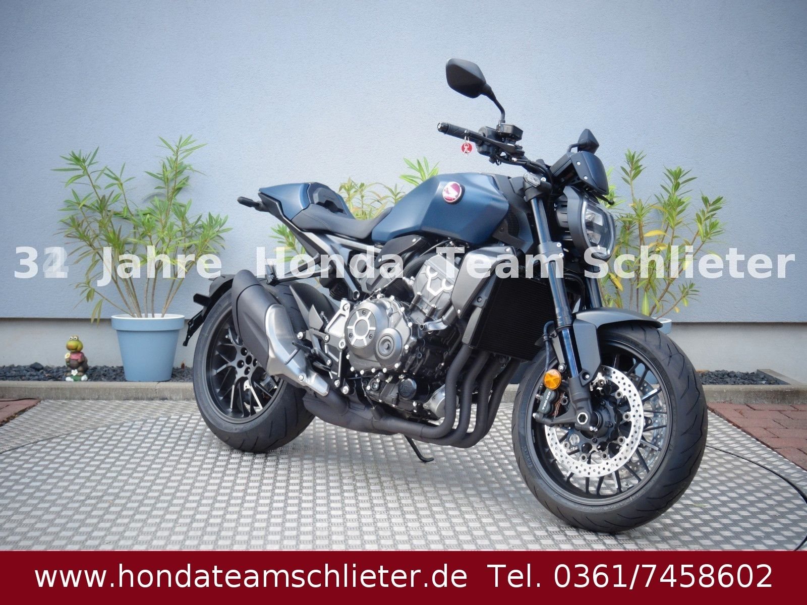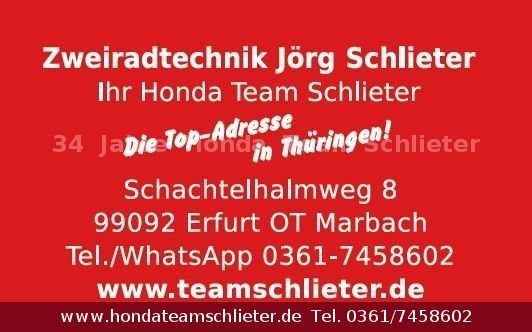 ABS Katalysator Elektrostarter Fahrzeugbeschreibung Fahrzeugbilder zeigen ein Neufahrzeug und dienen nur der Illustration. Raus dem Schattenreich - hier kommt das ultimative Stealth-Design.Während die CB1000R durch funktionale Schönheit besticht, geht die CB1000R Black Edition einen Schritt weiter. Im wahrsten Sinne des Wortes. Sie ist keine Lichtgestalt, sondern ein Schattenwesen, dessen Erscheinungsbild für Gänsehaut sorgt. Düsternis ist ihr wesentlicher Charakterzug. Sieh sie dir an. An ihren Anblick müssen sich Ihre Augen erst mal gewöhnen, denn abgesehen von einigen wenigen Akzenten aus gefrästem Aluminium erscheint alles tiefschwarz. Oder noch schwärzer. Ausgestattet mit individuellem Zubehör bleibt sie unter jedem Radar und sticht dennoch aus der Masse hervor. Weitere Infos, Beratung und Verkauf unter Tel./Whats App 0361/7458602 oder www.teamschlieter.de Auch bieten wir eine Finanzierung mit oder auch ohne Anzahlung an. Die Anlieferung ist nach Absprache schnell und preiswert möglich. Bei uns findet jeder sein Traumbike, auf ca. 500 m Ausstellungsfläche stehen zahlreiche Neumotorräder und Gebrauchtmotorräder bereit. Wir haben ausreichend Platz für die Besichtigung oder ein Probesitzen. Auch Probefahrten sind nach einer Terminvereinbarung möglich. Jeder bekommt eine faire Beratung und wir freuen uns auf Ihren Besuch. Unsere Öffnungszeiten: Mo. - Fr. von 9.00 - 17.00 Uhr Samstag von 9.00 - 12.00 Uhr Sowie nach Absprach! Fahrzeugdetails