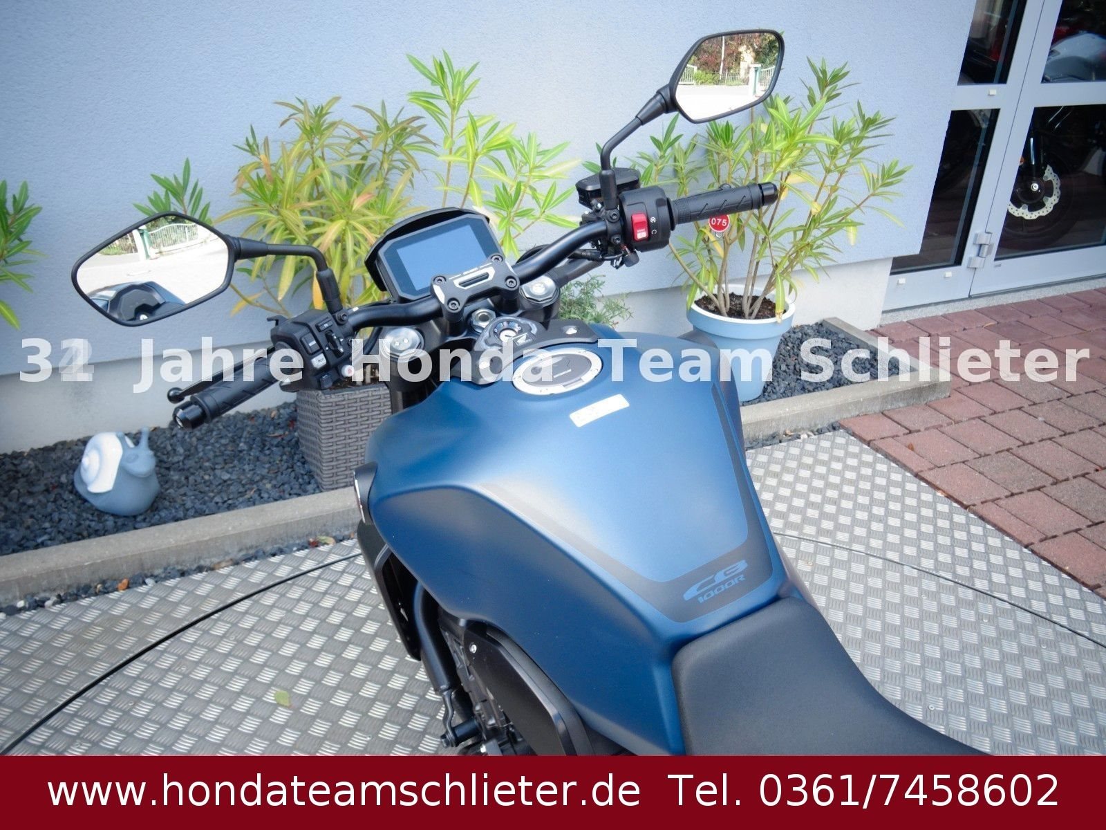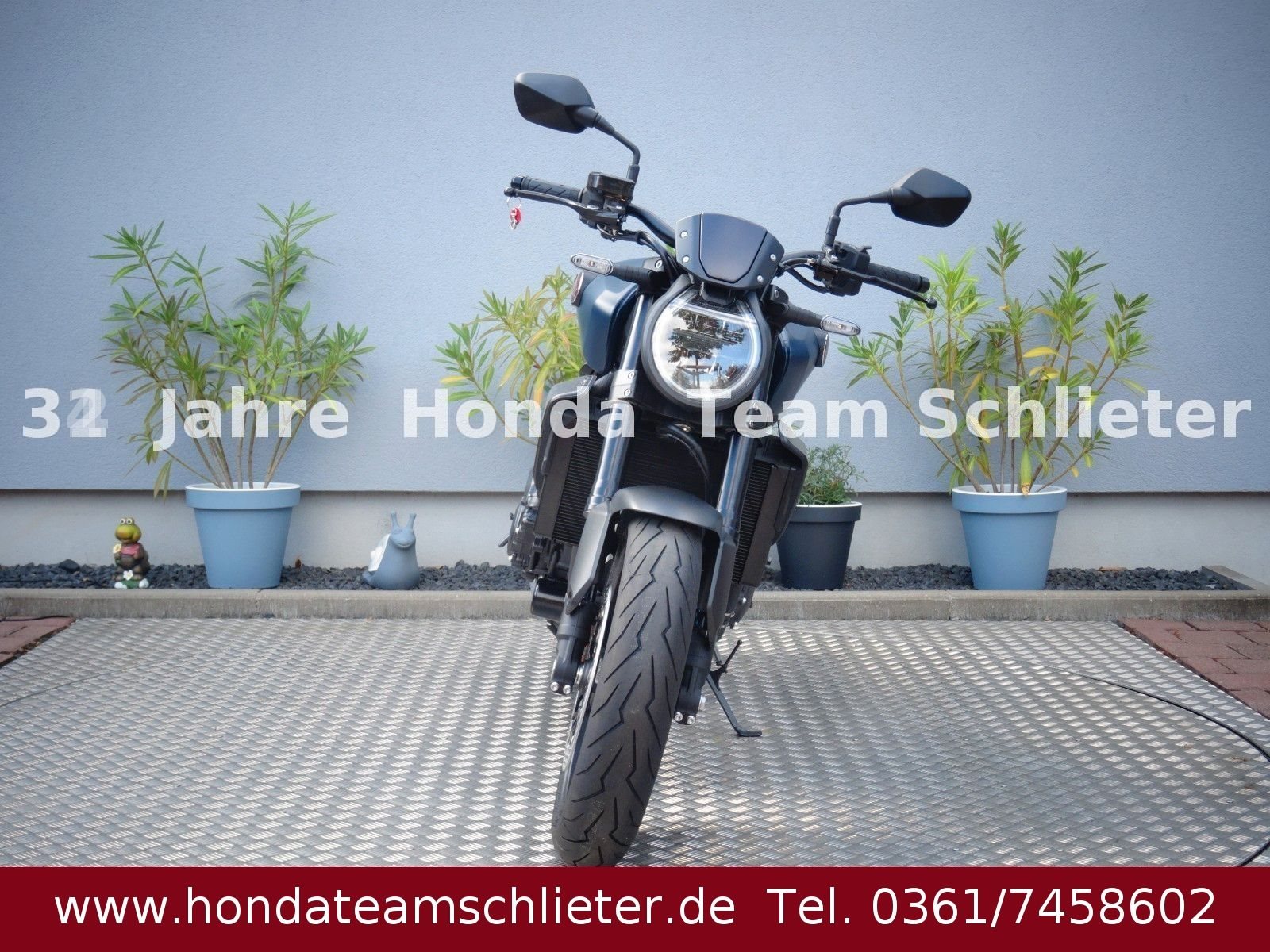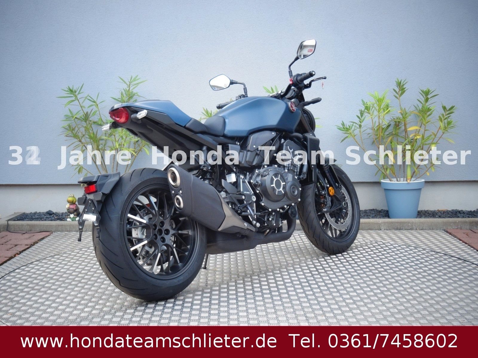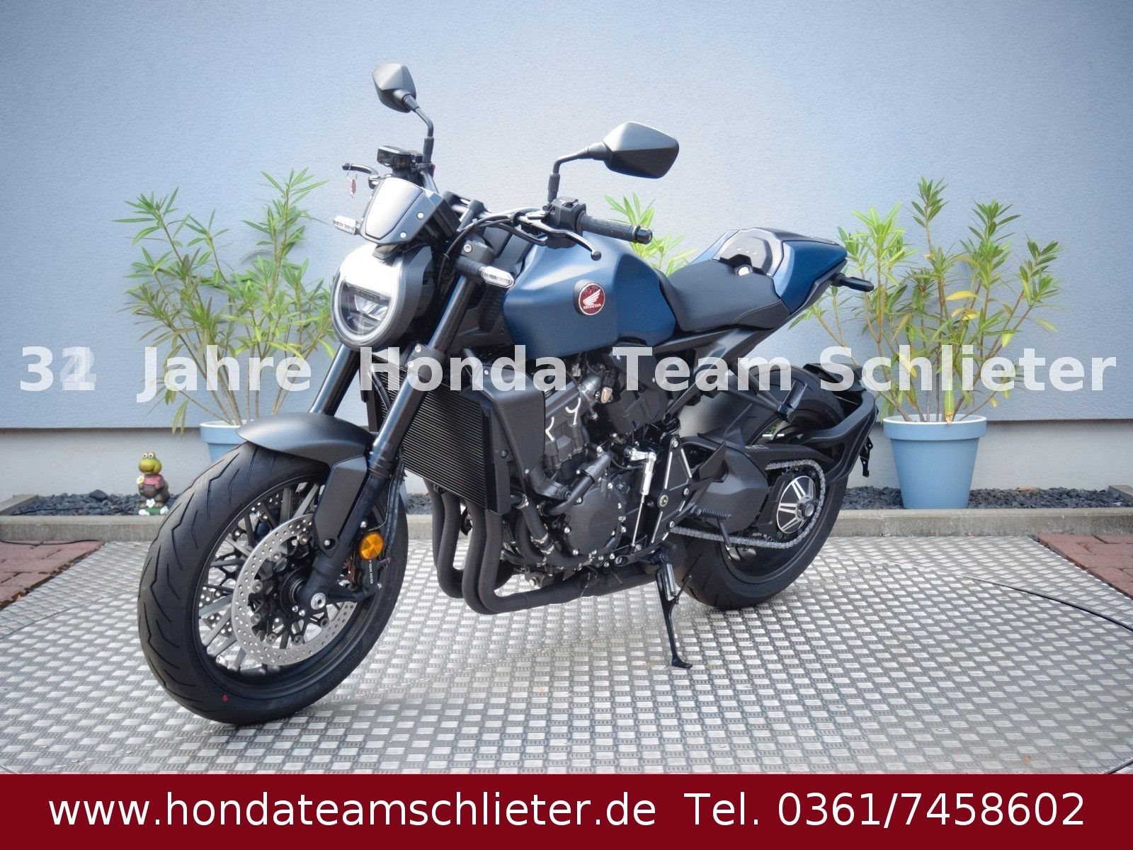 ABS Katalysator Elektrostarter Fahrzeugbeschreibung Fahrzeugbilder zeigen ein Neufahrzeug und dienen nur der Illustration. Raus dem Schattenreich - hier kommt das ultimative Stealth-Design.Während die CB1000R durch funktionale Schönheit besticht, geht die CB1000R Black Edition einen Schritt weiter. Im wahrsten Sinne des Wortes. Sie ist keine Lichtgestalt, sondern ein Schattenwesen, dessen Erscheinungsbild für Gänsehaut sorgt. Düsternis ist ihr wesentlicher Charakterzug. Sieh sie dir an. An ihren Anblick müssen sich Ihre Augen erst mal gewöhnen, denn abgesehen von einigen wenigen Akzenten aus gefrästem Aluminium erscheint alles tiefschwarz. Oder noch schwärzer. Ausgestattet mit individuellem Zubehör bleibt sie unter jedem Radar und sticht dennoch aus der Masse hervor. Weitere Infos, Beratung und Verkauf unter Tel./Whats App 0361/7458602 oder www.teamschlieter.de Auch bieten wir eine Finanzierung mit oder auch ohne Anzahlung an. Die Anlieferung ist nach Absprache schnell und preiswert möglich. Bei uns findet jeder sein Traumbike, auf ca. 500 m Ausstellungsfläche stehen zahlreiche Neumotorräder und Gebrauchtmotorräder bereit. Wir haben ausreichend Platz für die Besichtigung oder ein Probesitzen. Auch Probefahrten sind nach einer Terminvereinbarung möglich. Jeder bekommt eine faire Beratung und wir freuen uns auf Ihren Besuch. Unsere Öffnungszeiten: Mo. - Fr. von 9.00 - 17.00 Uhr Samstag von 9.00 - 12.00 Uhr Sowie nach Absprach! Fahrzeugdetails