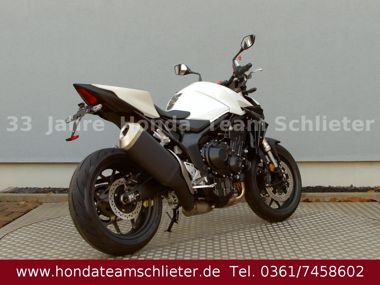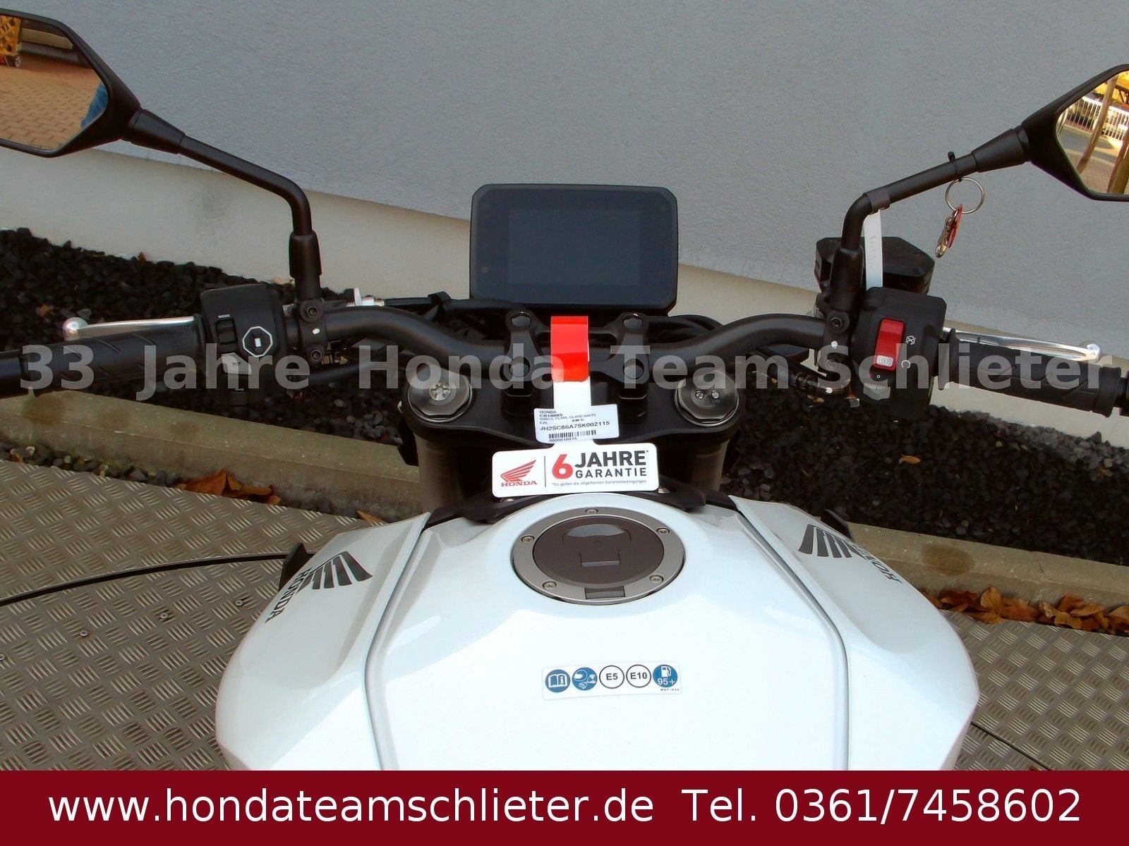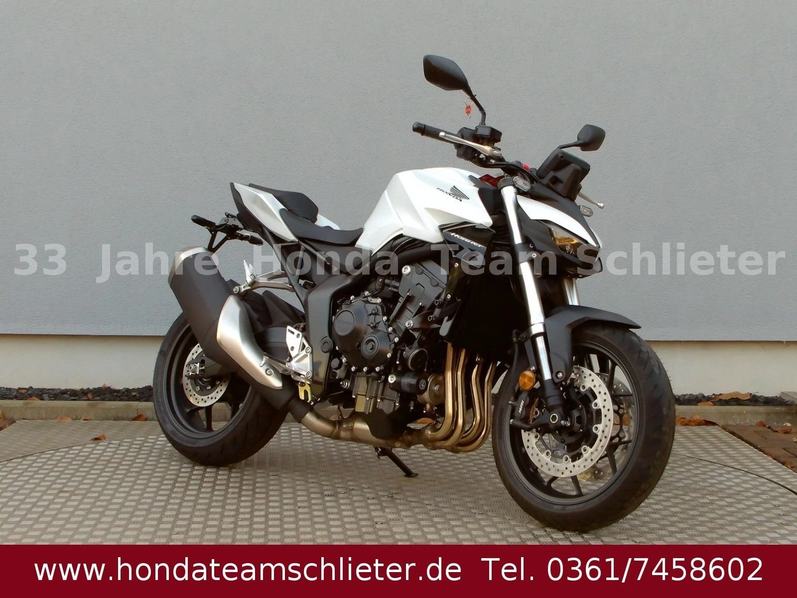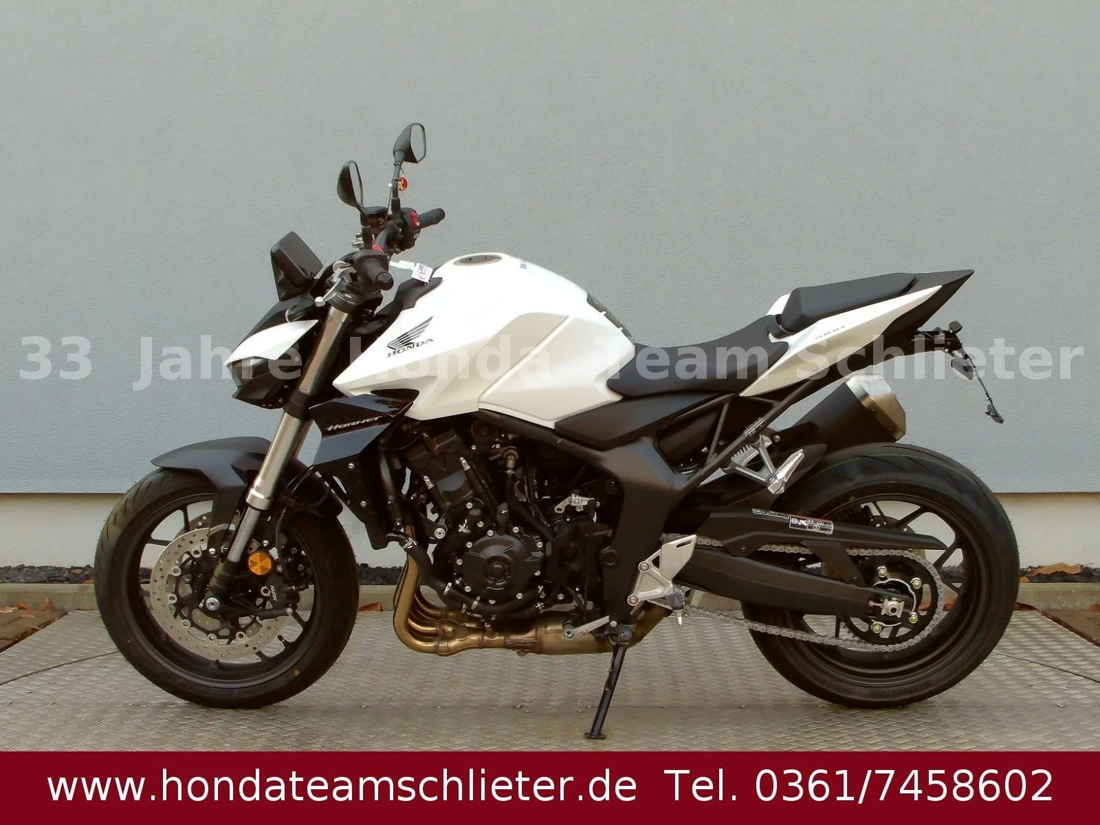 Halb bezahlt. Komplett begeistert. Die 50/50 Finanzierung für 24 Monaten Zinsen. Der schnellste Weg zum Traumbike. Mit 50% Anzahlung 4995,50 € starten. 24 Monate lang keine Raten zahlen. Danach das Bike einfach zurückgeben, den Rest 5.401,55 € inkl. 3,99 % Zinsen zahlen oder anschlussfinanzieren! Ein unverbindliches Finanzierungsangebot der Honda Bank GmbH, Hanauer Landstraße 222-226, 60314 Frankfurt am Main, auf Basis der unverbindlichen Preisempfehlung von Honda Deutschland. Angebote gültig für Privatkunden bis auf Widerruf, bei allen teilnehmenden Händlern. 3-Optionen-Kredit, am Ende der Laufzeit Begleichung des Restbetrages oder Finanzierung der Restsumme oder Rückgabe des Fahrzeugs (gemäß Rückkaufbedingungen. Die Hornet-Familie ist jetzt vollständig und unser Topmodell sticht heraus. Die neue CB1000 Hornet mit ihrem Vierzylindermotor ist ein erstklassiges Naked Bike, das den Asphalt zum Glühen bringt. Throttle By Wire sorgt für präzise Kontrolle. Die unverfälschte, aggressive Streetfighter-Attitüde wird durch einen markanten LED-Doppelscheinwerfer unterstrichen. Das 5-Zoll TFT-Farbdisplay und die Honda Road Sync-Konnektivität sorgen für die nötigen Informationen. Kann es losgehen? Weitere Infos, Beratung und Verkauf unter Tel./Whats App 0361/7458602 oder www.teamschlieter.de Auch bieten wir eine Finanzierung mit oder auch ohne Anzahlung an. Die Anlieferung ist nach Absprache schnell und preiswert möglich. Bei uns findet jeder sein Traumbike, auf ca. 500 m Ausstellungsfläche stehen zahlreiche Neumotorräder und Gebrauchtmotorräder bereit. Wir haben ausreichend Platz für die Besichtigung oder ein Probesitzen. Auch Probefahrten sind nach einer Terminvereinbarung möglich. Jeder bekommt eine faire Beratung und wir freuen uns auf Ihren Besuch. Unsere Öffnungszeiten: Mo. - Fr. von 9.00 - 17.00 Uhr Samstag von 9.00 - 12.00 Uhr Sowie nach Absprache! Fahrzeugdetails