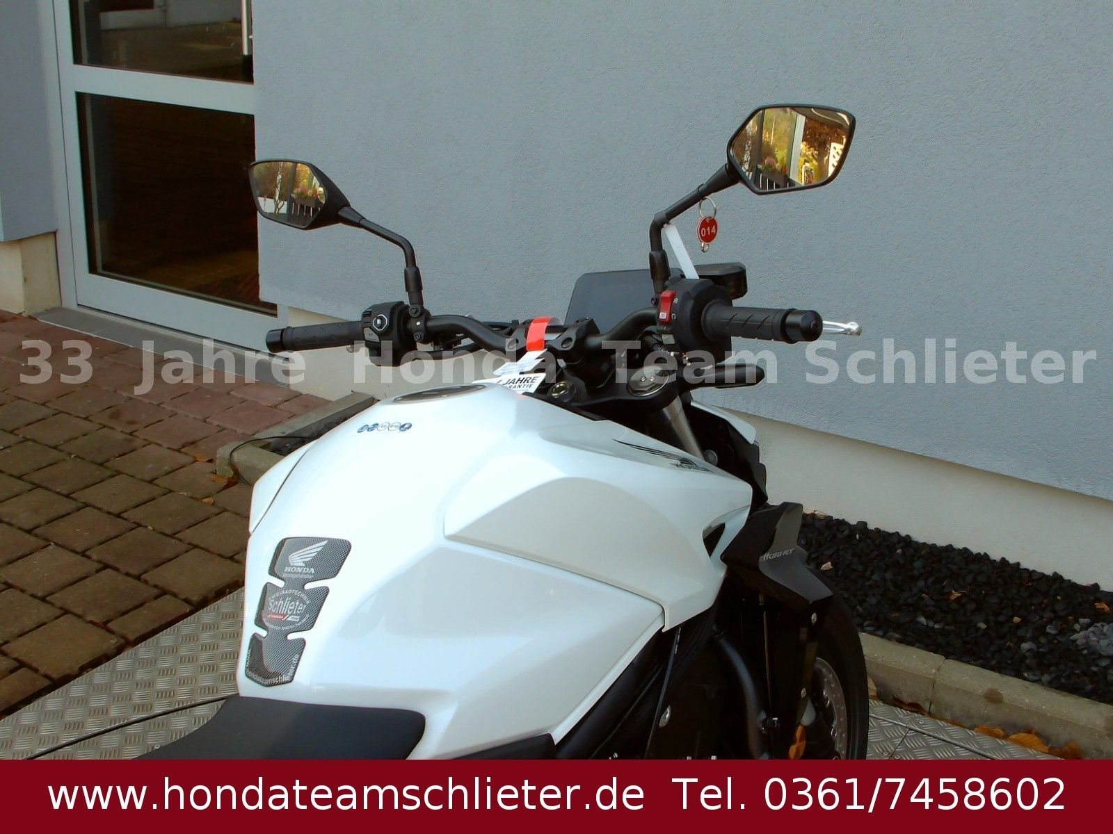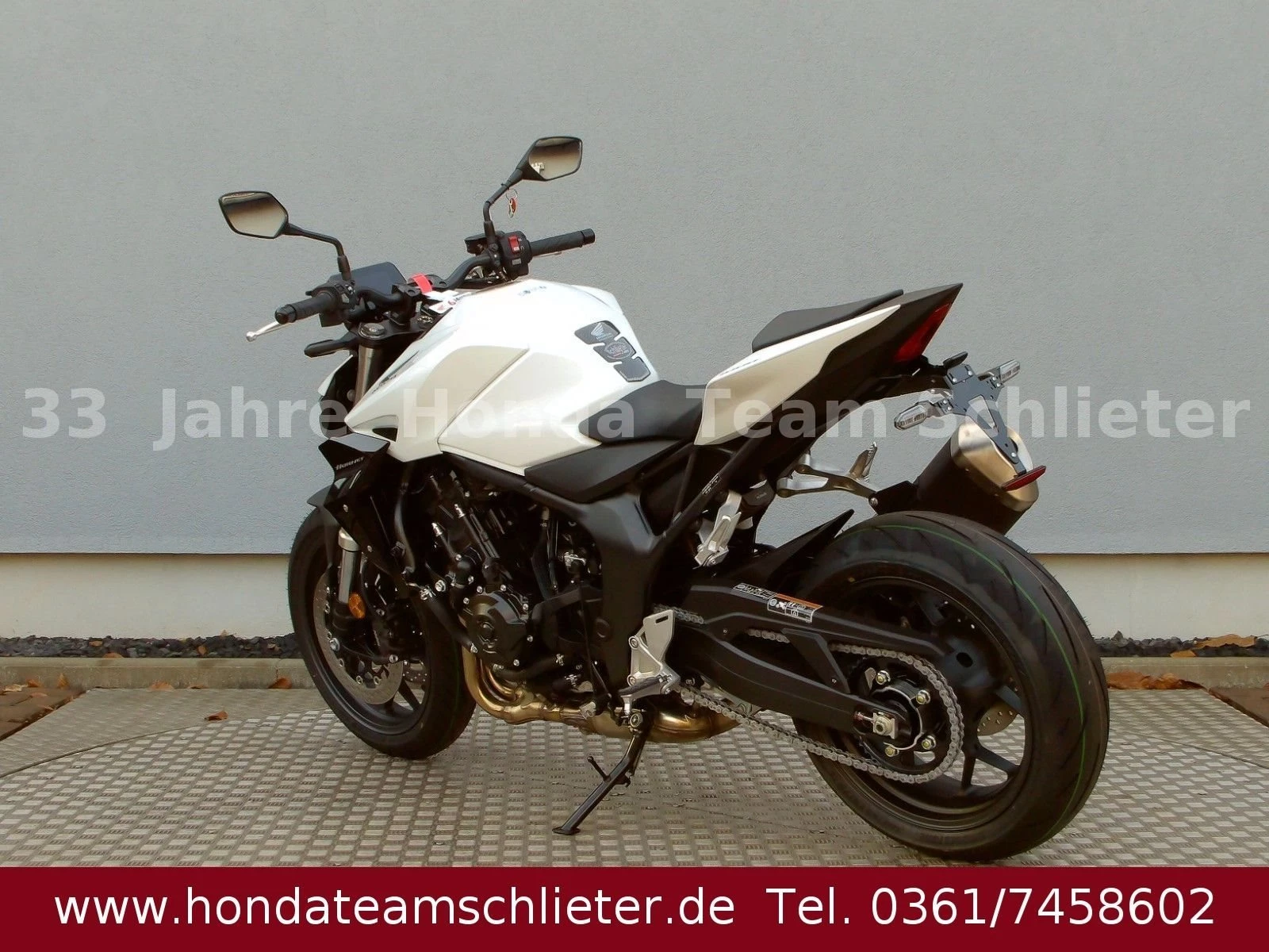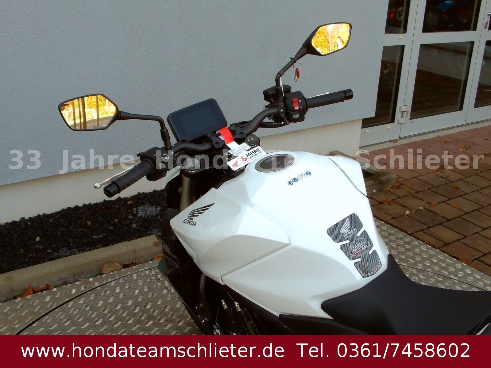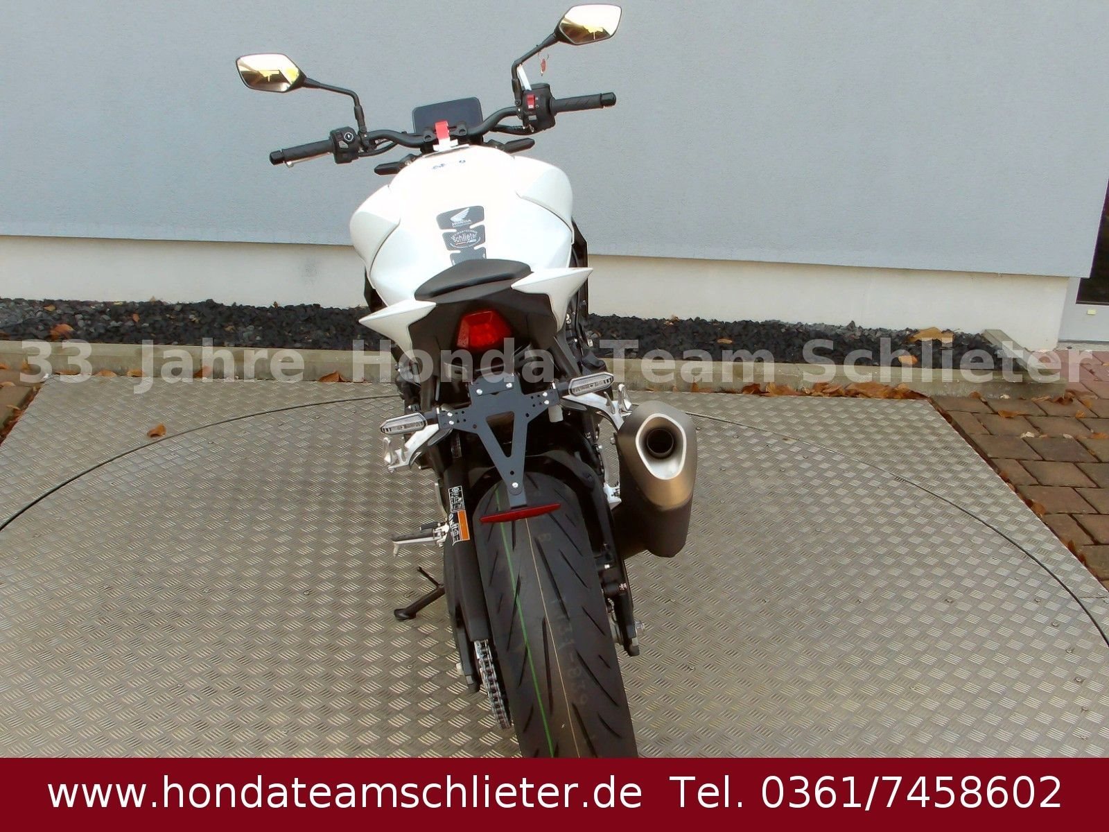 Halb bezahlt. Komplett begeistert. Die 50/50 Finanzierung für 24 Monaten Zinsen. Der schnellste Weg zum Traumbike. Mit 50% Anzahlung 4995,50 € starten. 24 Monate lang keine Raten zahlen. Danach das Bike einfach zurückgeben, den Rest 5.401,55 € inkl. 3,99 % Zinsen zahlen oder anschlussfinanzieren! Ein unverbindliches Finanzierungsangebot der Honda Bank GmbH, Hanauer Landstraße 222-226, 60314 Frankfurt am Main, auf Basis der unverbindlichen Preisempfehlung von Honda Deutschland. Angebote gültig für Privatkunden bis auf Widerruf, bei allen teilnehmenden Händlern. 3-Optionen-Kredit, am Ende der Laufzeit Begleichung des Restbetrages oder Finanzierung der Restsumme oder Rückgabe des Fahrzeugs (gemäß Rückkaufbedingungen. Die Hornet-Familie ist jetzt vollständig und unser Topmodell sticht heraus. Die neue CB1000 Hornet mit ihrem Vierzylindermotor ist ein erstklassiges Naked Bike, das den Asphalt zum Glühen bringt. Throttle By Wire sorgt für präzise Kontrolle. Die unverfälschte, aggressive Streetfighter-Attitüde wird durch einen markanten LED-Doppelscheinwerfer unterstrichen. Das 5-Zoll TFT-Farbdisplay und die Honda Road Sync-Konnektivität sorgen für die nötigen Informationen. Kann es losgehen? Weitere Infos, Beratung und Verkauf unter Tel./Whats App 0361/7458602 oder www.teamschlieter.de Auch bieten wir eine Finanzierung mit oder auch ohne Anzahlung an. Die Anlieferung ist nach Absprache schnell und preiswert möglich. Bei uns findet jeder sein Traumbike, auf ca. 500 m Ausstellungsfläche stehen zahlreiche Neumotorräder und Gebrauchtmotorräder bereit. Wir haben ausreichend Platz für die Besichtigung oder ein Probesitzen. Auch Probefahrten sind nach einer Terminvereinbarung möglich. Jeder bekommt eine faire Beratung und wir freuen uns auf Ihren Besuch. Unsere Öffnungszeiten: Mo. - Fr. von 9.00 - 17.00 Uhr Samstag von 9.00 - 12.00 Uhr Sowie nach Absprache! Fahrzeugdetails