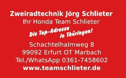 ABS Katalysator Elektrostarter Fahrzeugbeschreibung Unser Angebot: Sie haben 2500,00 EUR zur unverbindlichen Preisempfehlung von Honda Deutschland gespart (UVP 18090,00EUR) Die Africa Twin ist ab sofort in einer neuen Variante erhältlich. Die Leistung des gewohnt agilen Adventure-Bikes setzt neue Maßstäbe und zeichnet sich besonders durch das zusätzliche Drehmoment im unteren Drehzahlbereich aus. Die neue verstellbare Verkleidungsscheibe macht die Tage auf der Straße wesentlich komfortabler. Die schlauchlosen Reifen lassen sich leicht reparieren. Zusätzlich eröffnet das elektronisch einstellbare Showa-EERAT-Aufhängung der Africa Twin ES eine ganz neue Dimension des Abenteuers. Fragen Sie uns nach den Finanzierungsmöglichkeiten mit oder ohne Anzahlung. Weitere Infos, Beratung und Verkauf unter: Tel./WhatsApp 0361/7458602 oder www.teamschlieter.de Wir bieten eine Anlieferung nach Absprache schnell und preiswert. Bei uns findet jeder sein Traumbike, auf ca. 500 m Ausstellungsfläche stehen zahlreiche Neumotorräder und Gebrauchtmotorräder. Es gibt ausreichend Platz für eine Besichtigung, ein Probesitzen und jeder bekommt eine faire Beratung. Ständig haben wir einen Lagerbestand von etwa 50-150 Neu- und Gebrauchtmotorrädern. Unsere Öffnungszeiten: Mo.-Fr. von 9.00-17.00 Uhr. Samstag von 9.00-12.00 Uhr. Probefahrten bitte nach Absprache!